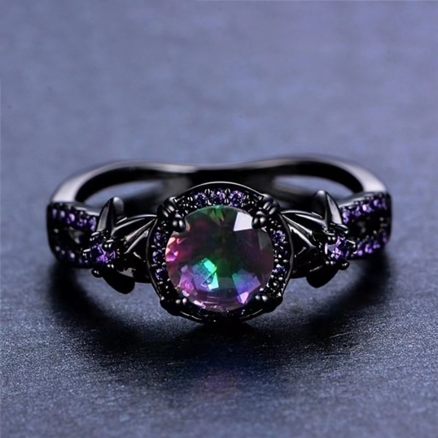 国境を越えた欧米ファッションの新型アクセサリー銃黒紫色ジルコン透かし彫りデザイン指輪ハロウィーン女性指輪潮