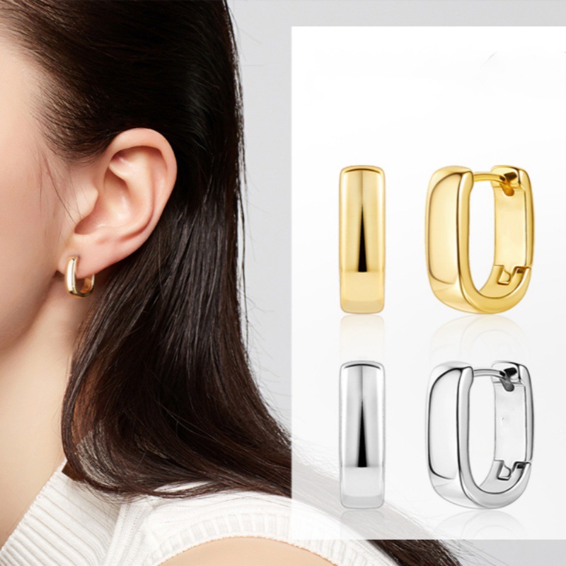 Insネット赤同金U字光沢耳留めイヤリング軽贅沢高級感気質洗練された素輪耳飾り