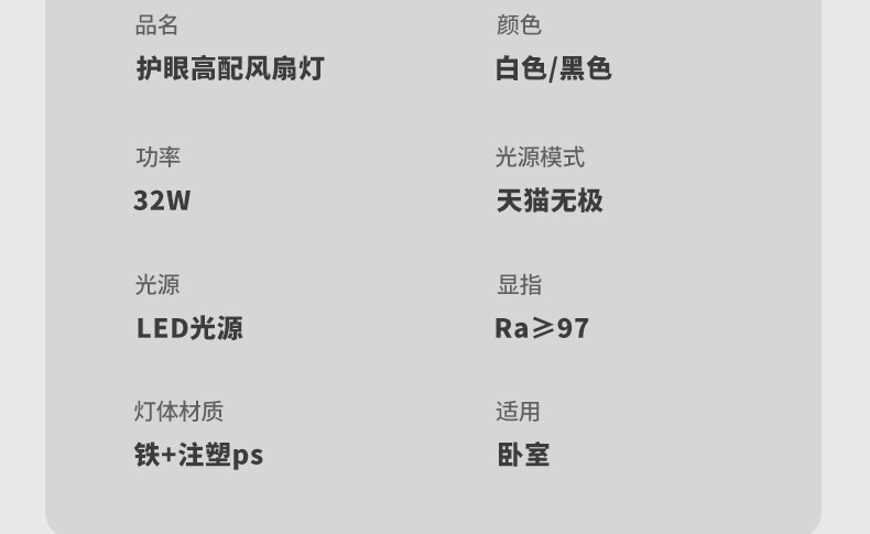 大観園寝室ファンライト北欧シンプルモダン家庭用インバーターレストランファン目の保護書斎ランプ578L