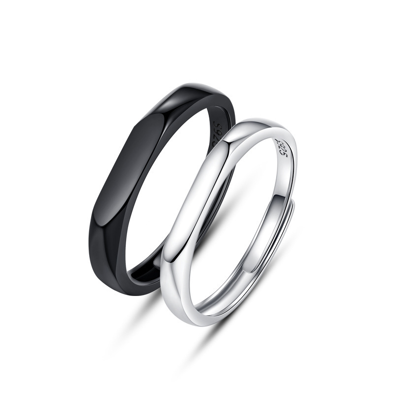 S925銀男女開口カップル指輪イタリア文菱形ペアリング活口ファッションシンプル卸売り