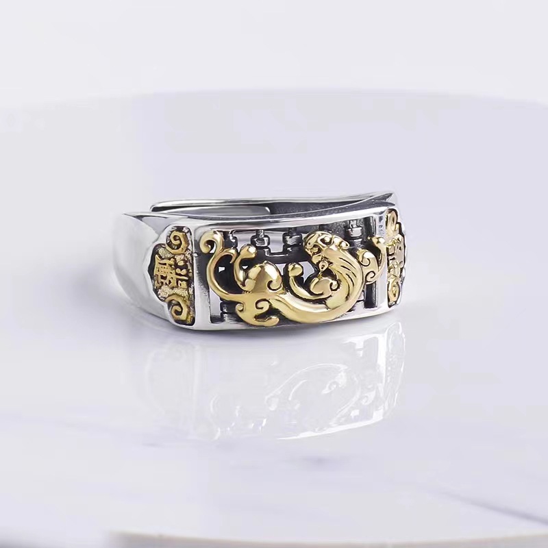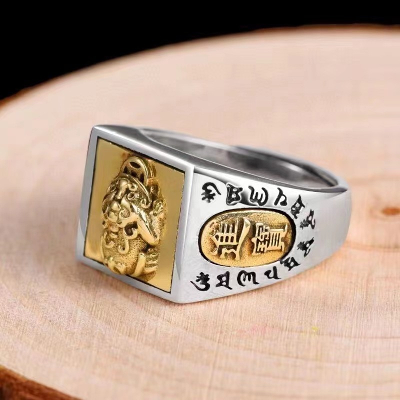 国風復古ピシュピスト招財男士指輪泰銀六字箴言招財入宝活口指環人差指