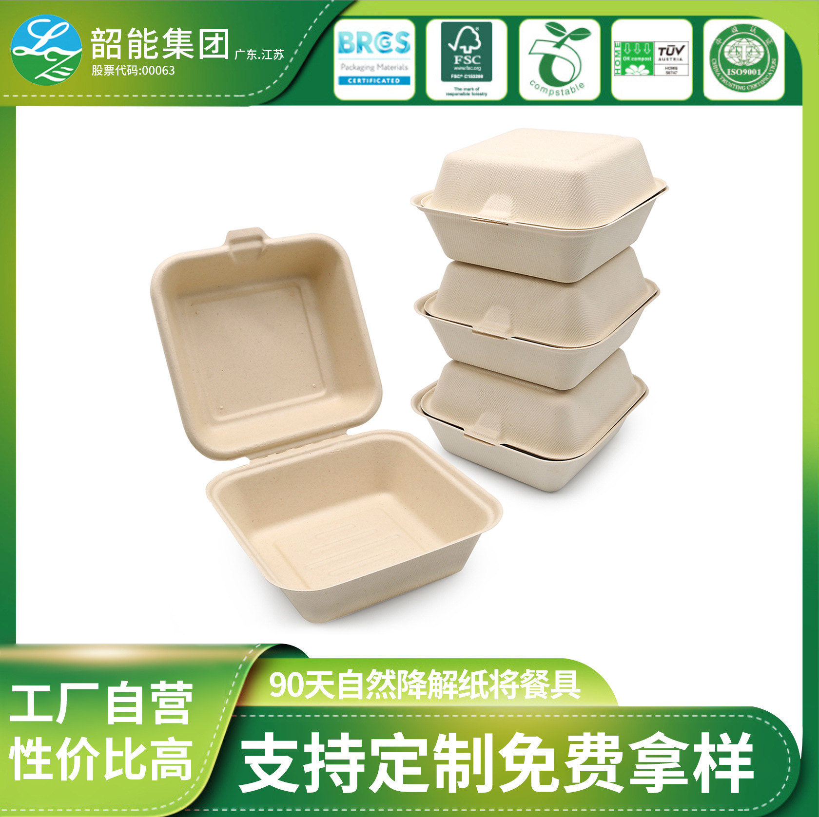 卸売り使い捨て包装箱ロック箱出前弁当箱パルプハンバーガー弁当箱分解可能ケーキ箱
