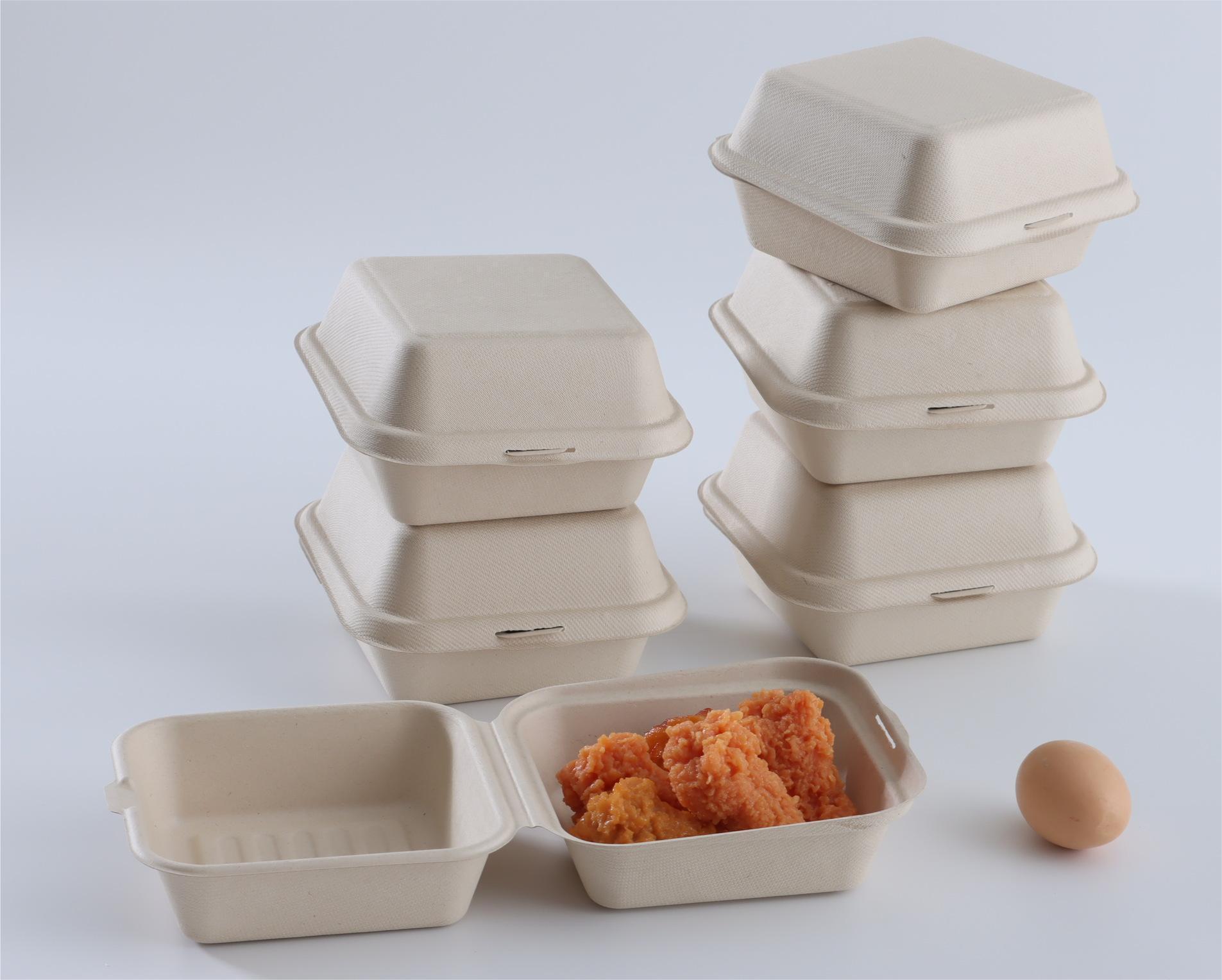 サトウキビ使い捨て包装箱パルプ弁当箱6インチハンバーガー箱の出前弁当箱はケーキ箱を温めることができる