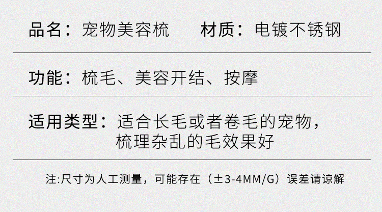 利超達専用ペット櫛メッキステンレス櫛疎密歯開結櫛猫犬美容櫛