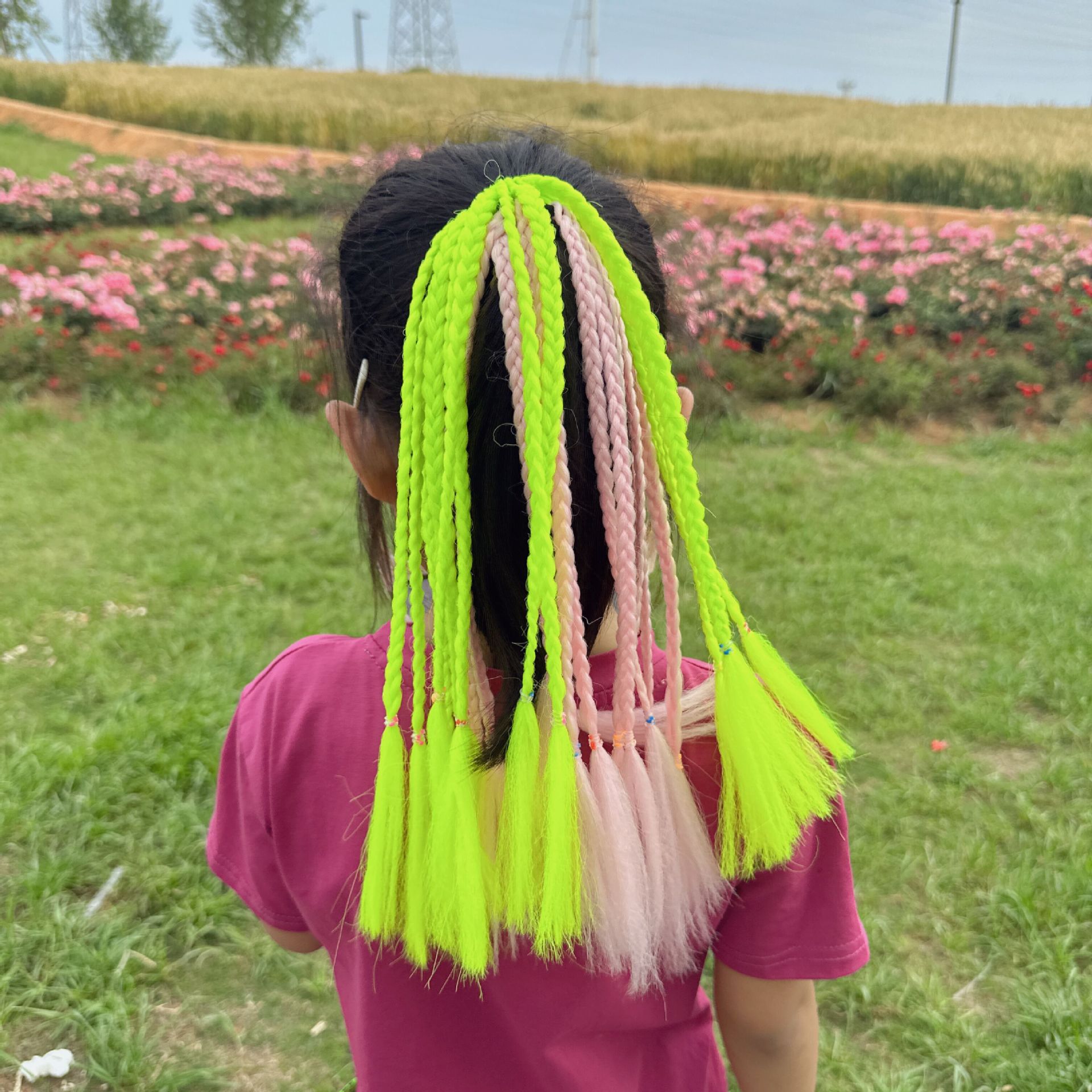 30センチのピンクのお下げ (1本12本),30センチの青いお下げ (1本12本),30センチ紫色のお下げ (1本12本),30センチの赤いお下げ (1本12本),30センチ蛍光黄色お下げ (1本12本),30センチの黒いお下げ (1本12本),30センチの薄緑色のお下げ (1本12本)