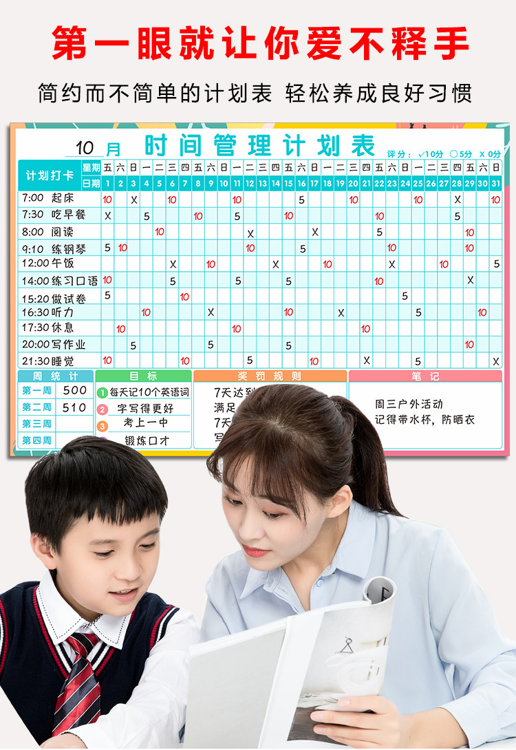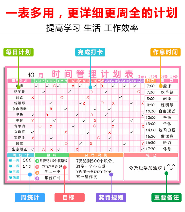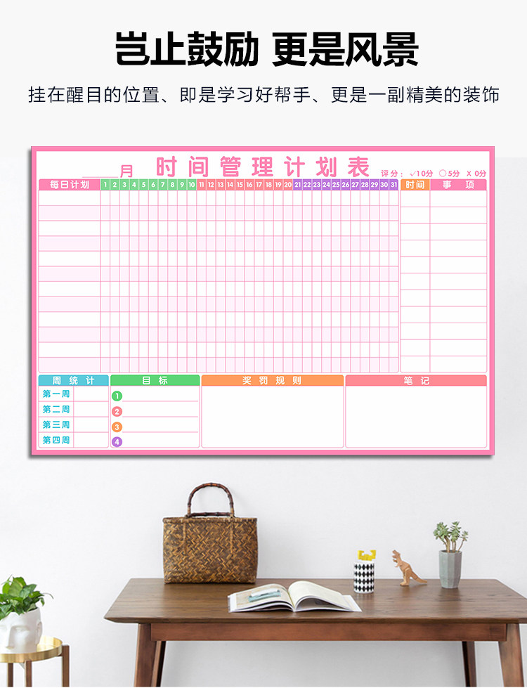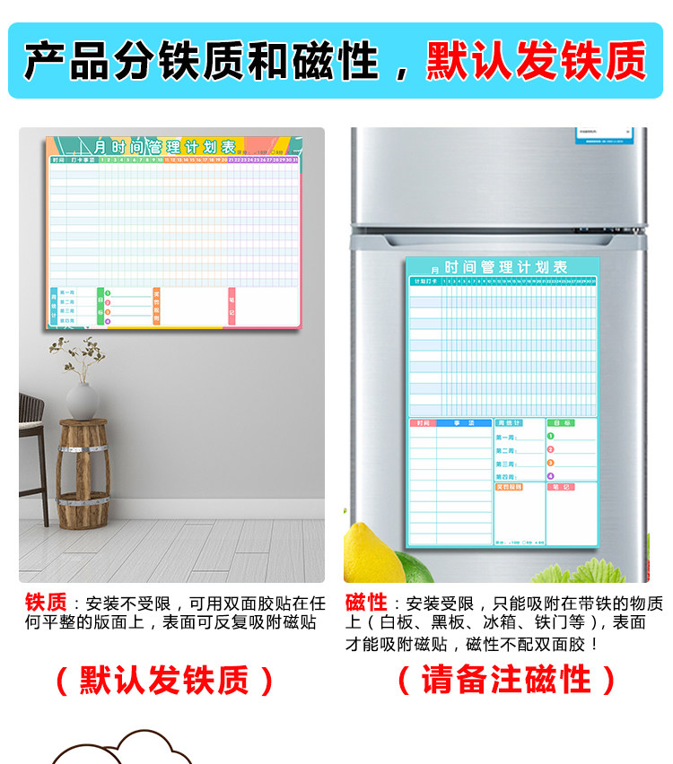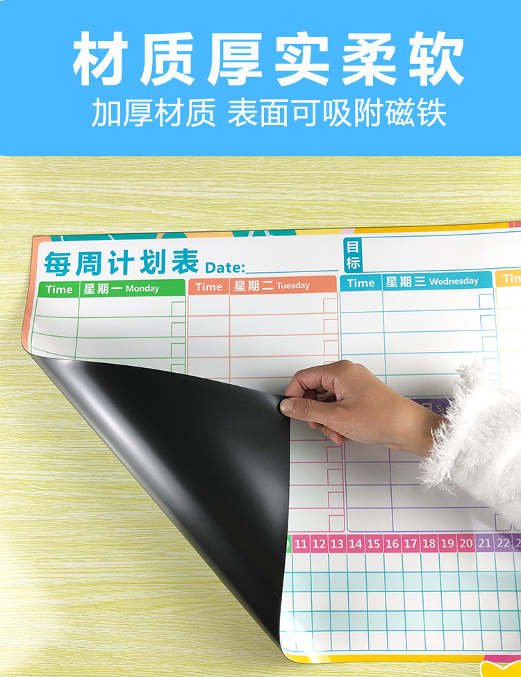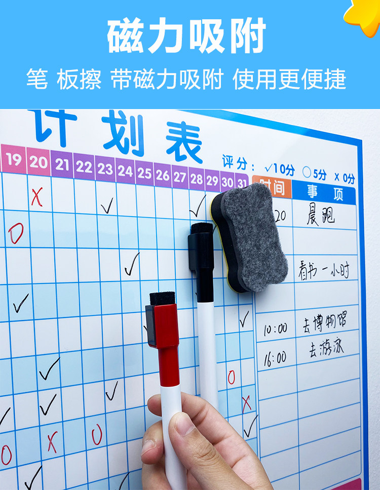 夏休みの予定表の壁にマグネットを貼って子供の時間を管理します。
