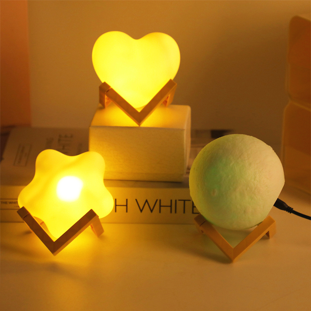 月球灯爱心五角星小夜灯卧室床头氛围灯护眼小台灯diy宿舍起夜灯