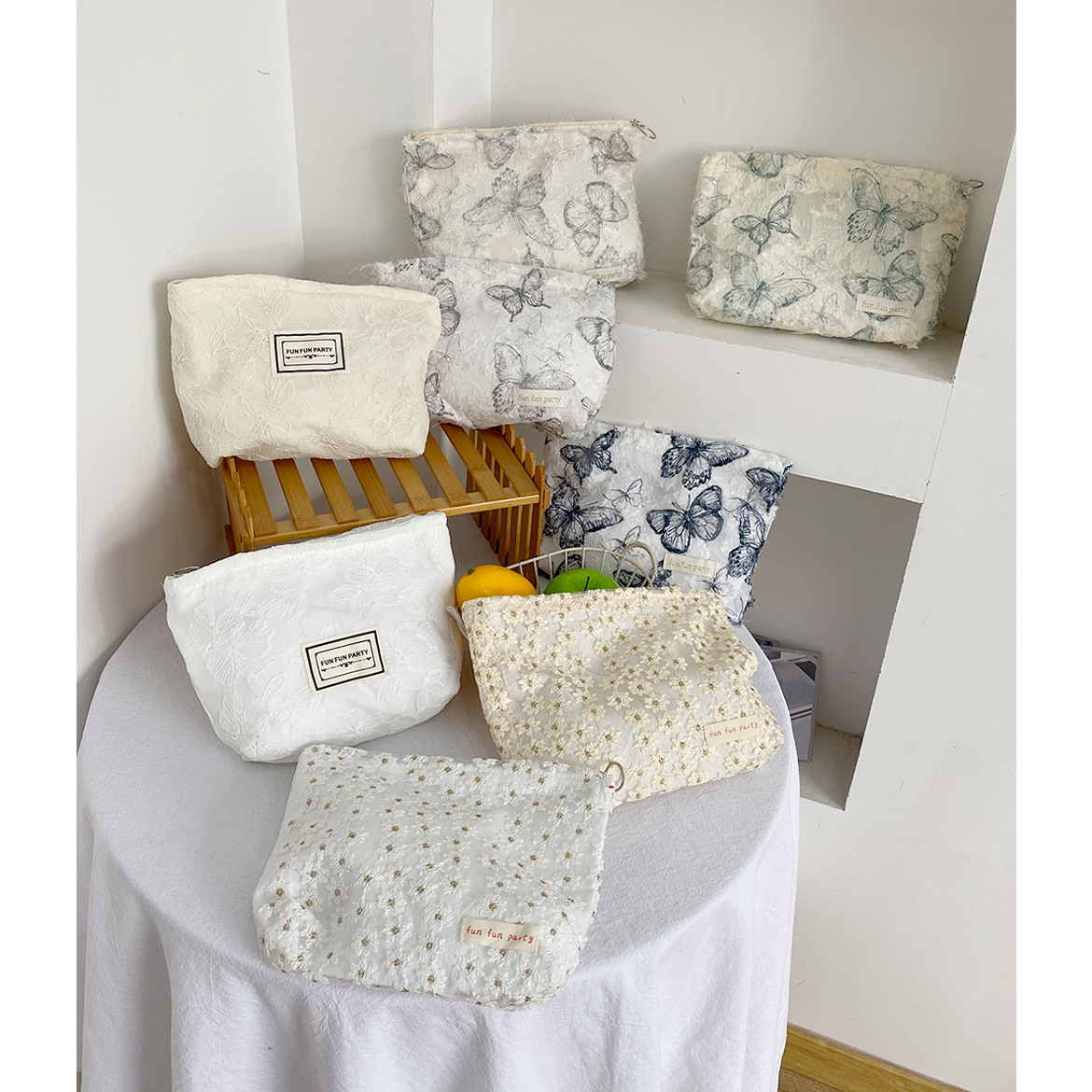 レース刺繍清新化粧バッグ韓国系ハンドバッグ携帯雑貨収納袋口紅包外出旅行収納