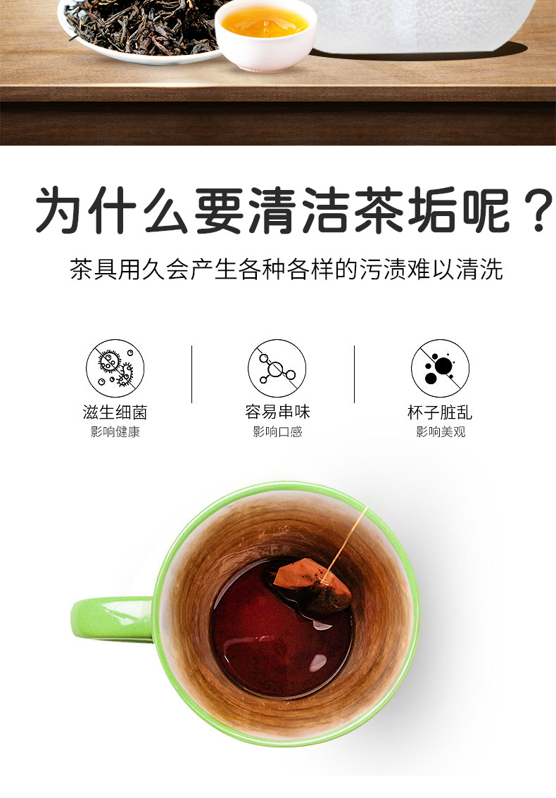 お茶の垢の清潔剤の食品級のお茶の垢の洗浄剤の神器のティーポットのコップのお茶の杯のお茶の器の垢の洗剤の粉を取り除きます。