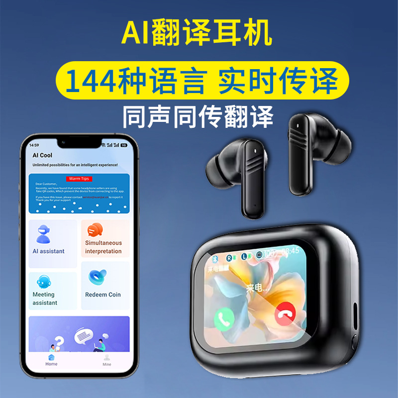 工厂直销 全彩屏入耳式耳机同声实时降噪传译AI智能翻译蓝牙耳机