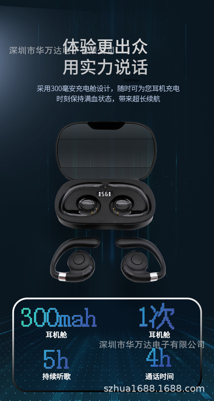 OWSプライベートモデルbluetoothイヤホン超長航続デジタル表示オープン式bluetoothイヤホン耳式ノイズ低減無線イヤホン