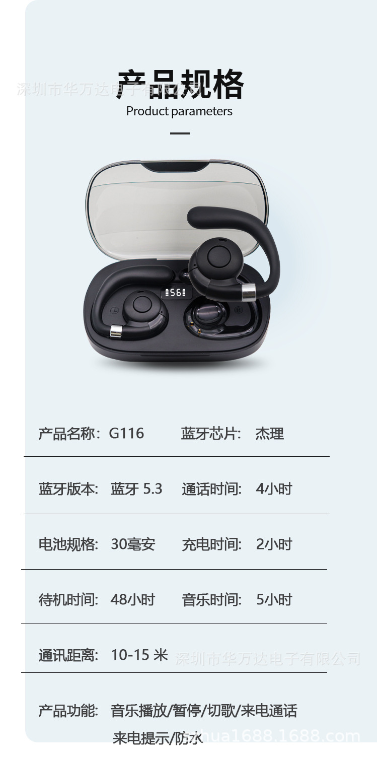 G116空气传导运动防水耳机OWS挂耳式开放式真无线蓝牙IPX5立体声