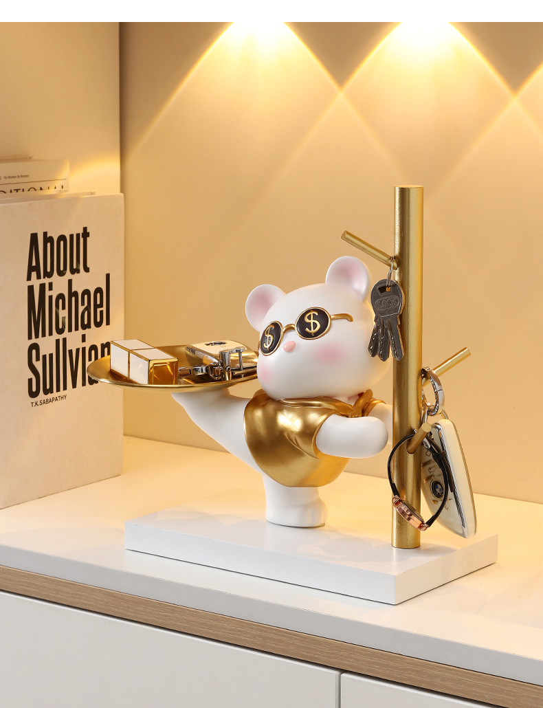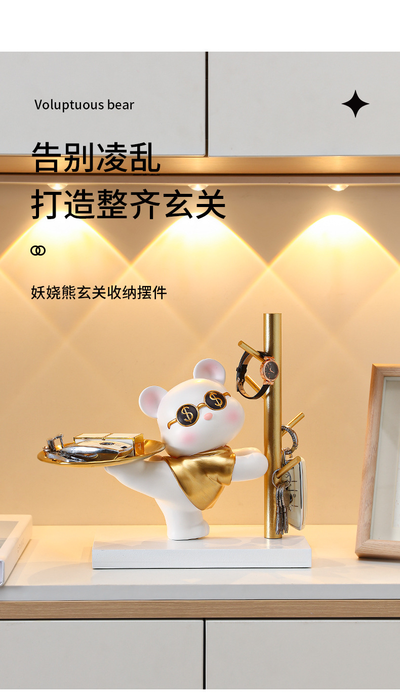 ぼんやり萌え熊癒し系収納置物入戸鍵収納トレー誕生日プレゼント女性可愛いテーブル置物