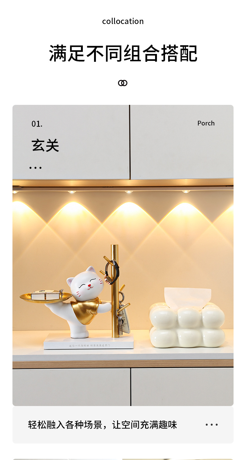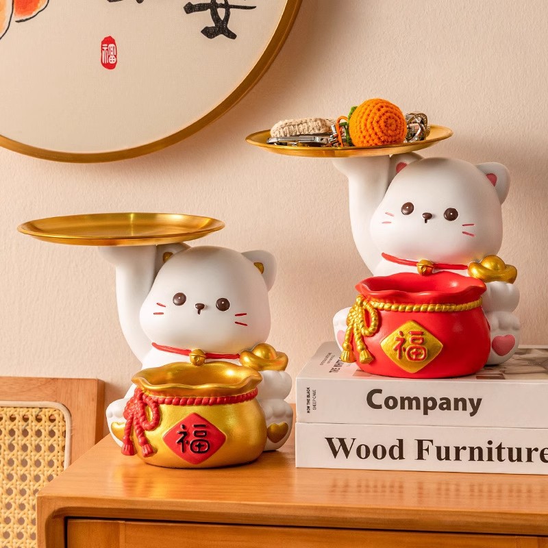福袋招财猫玄关钥匙收纳摆件客厅家居桌面入户酒柜装饰品乔迁礼品