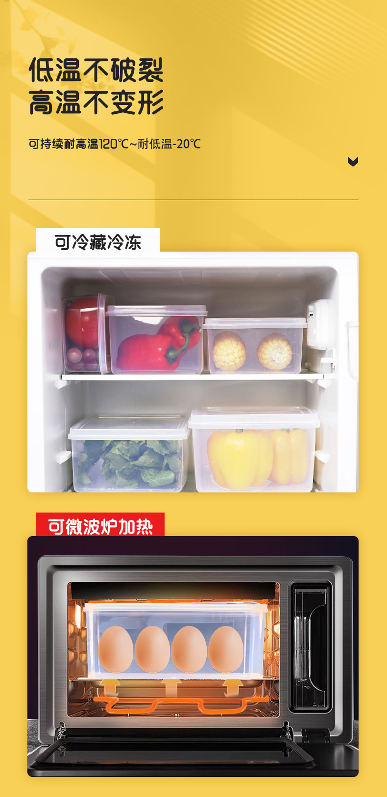 塑料保鲜盒加厚食品长方形冰箱冷藏冷冻大容量收纳密封储存盒商用