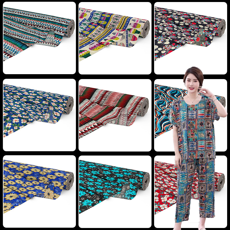 现货人造棉布料连衣裙睡衣家居服中老年套装棉绸印花面料服装布料