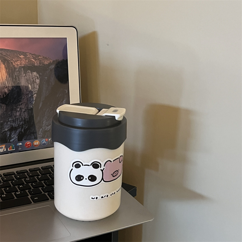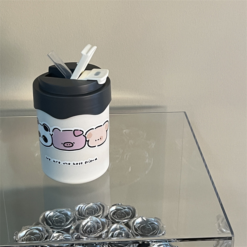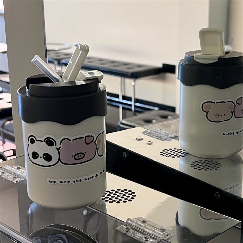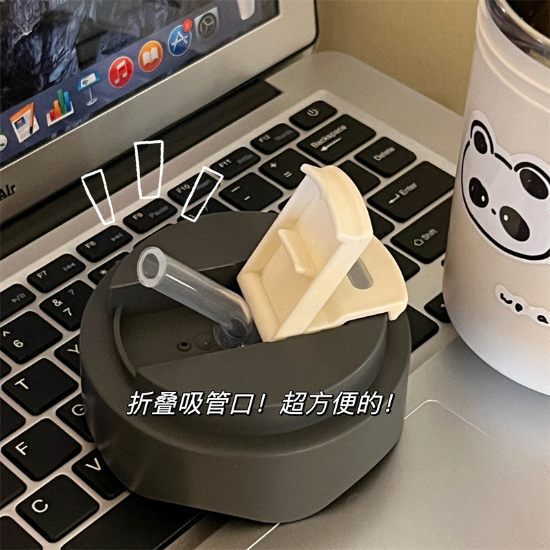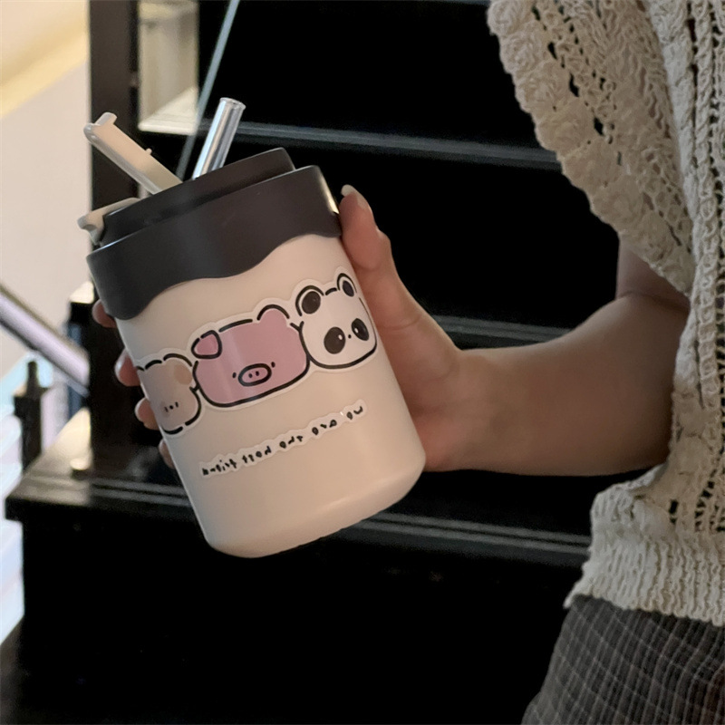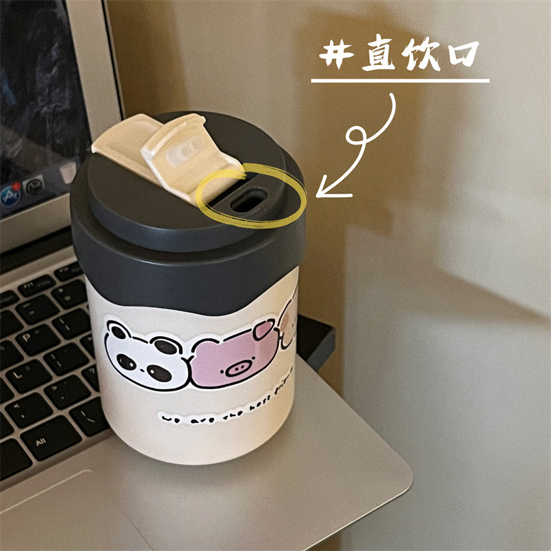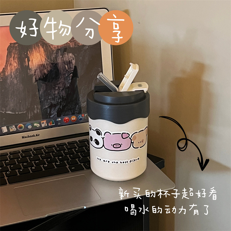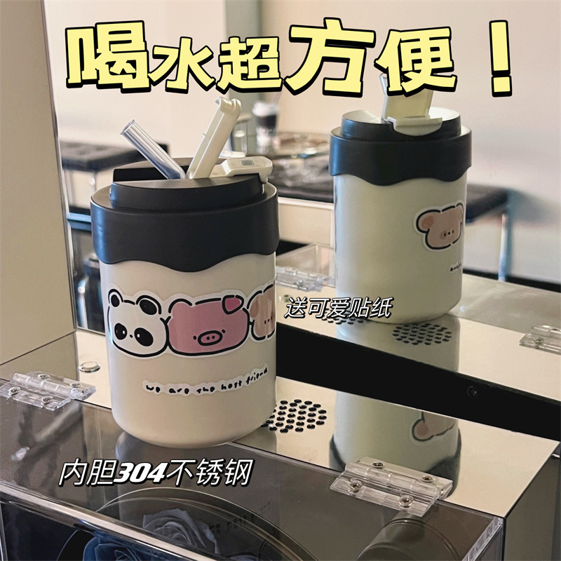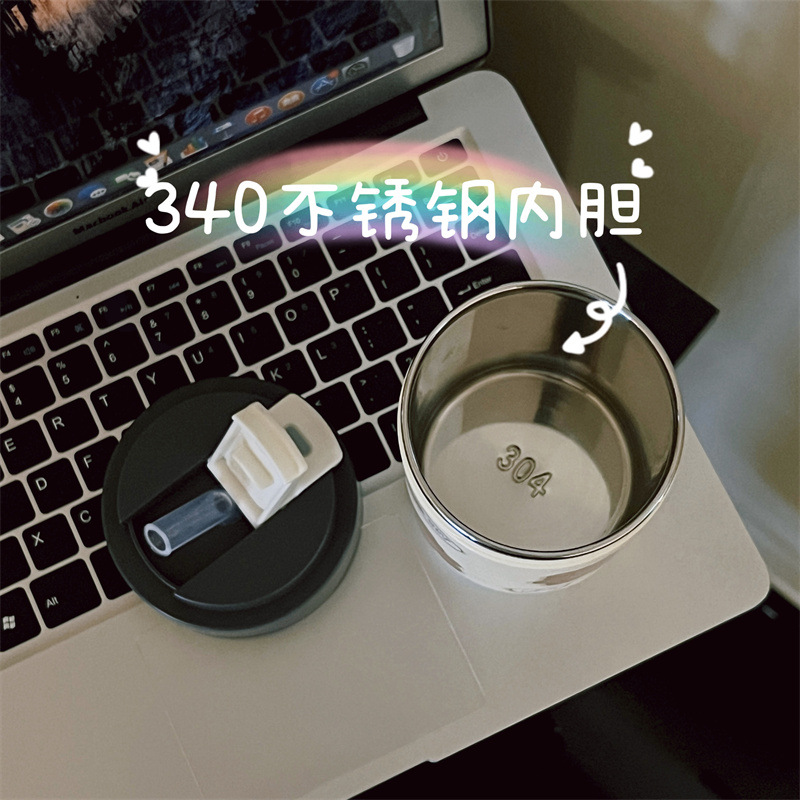 かわいい超キュートなストロー付き保温水筒 女の子向け 高颜值 小型で持ち運びやすい水筒 学生向け 漫画風携帯カップ 新型