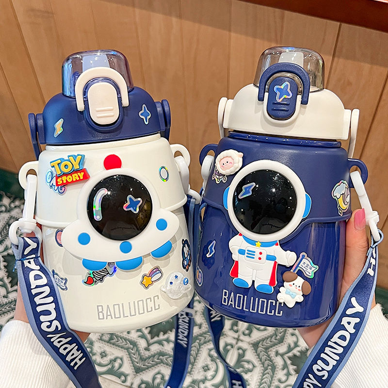 宇宙飛行士保温カップ316大容量児童コップストローカップ付き小学生専用大腹カップ保温ポット