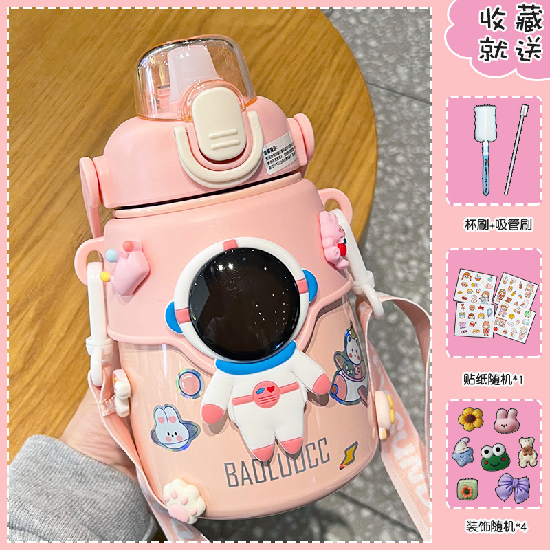 かわいい宇宙飛行士保温カップ女子高颜値児童学生水コップ大容量ネット赤大腹ストロー水筒