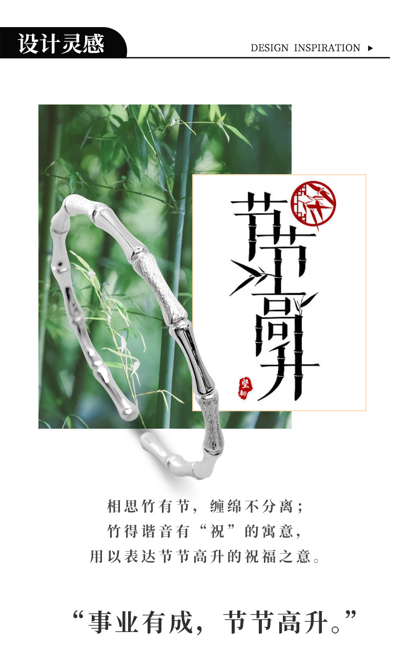 足銀9999純銀のブレスレットの女性の竹の節は砂を吹きかけます。