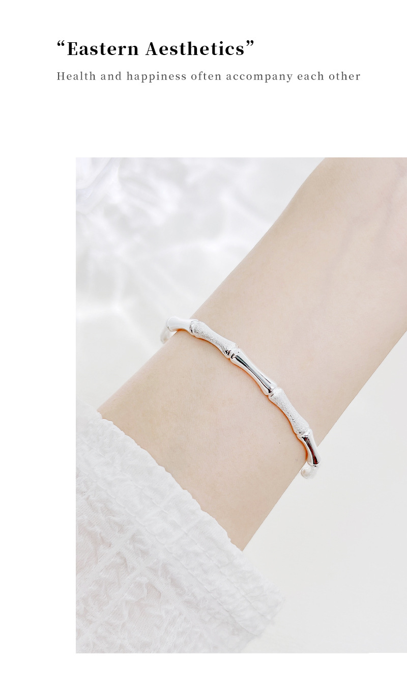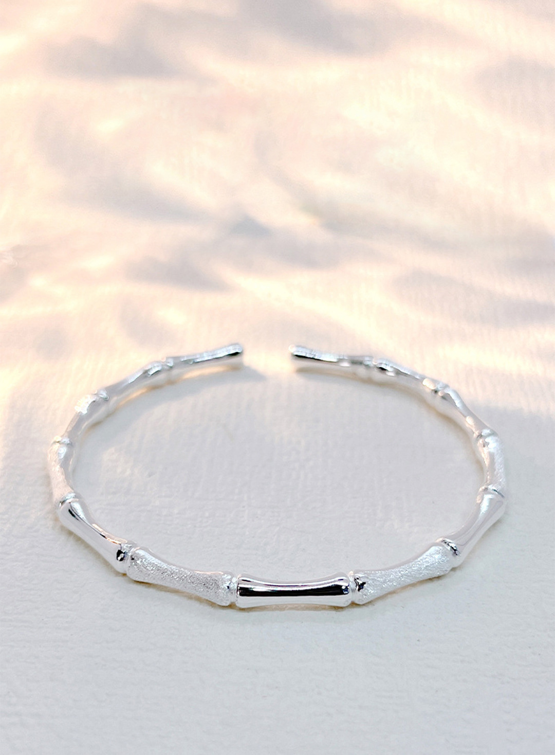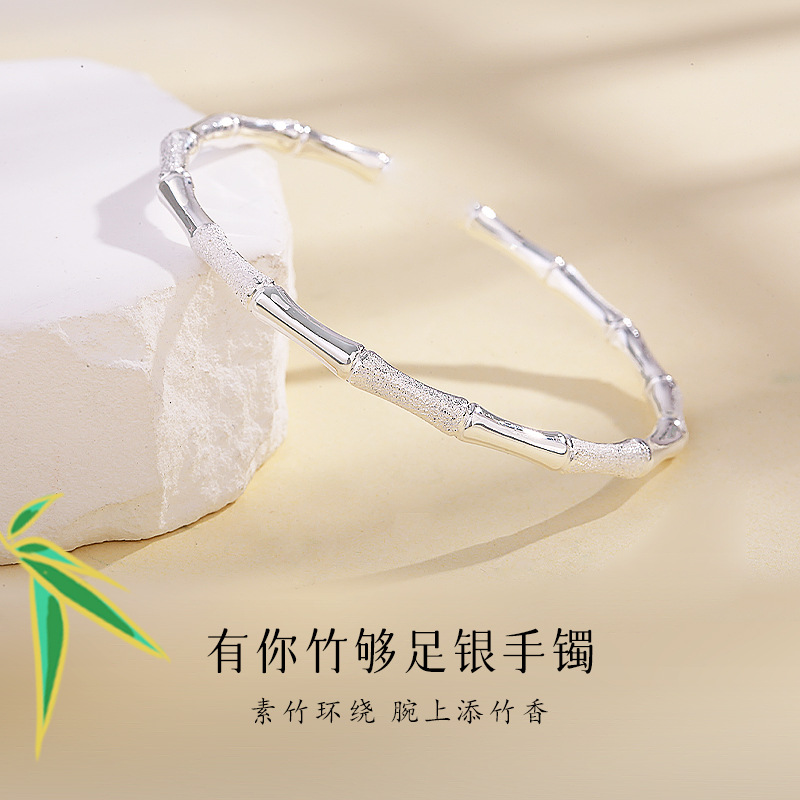 女性用の光と砂の竹のスターリングシルバーのブレスレット、シルバー9999のオープンブレスレット、ガールフレンドの誕生日プレゼント用のニッチブレスレット
