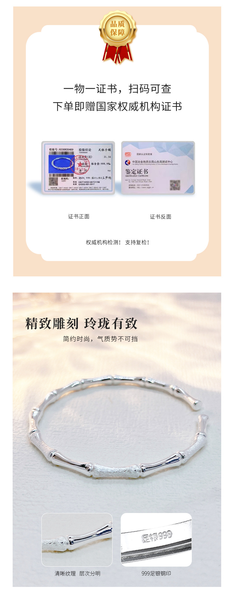 一光一沙竹節足銀9999純銀ブレスレット女性中実シンプルブレスレット高級感小衆手環プレゼント
