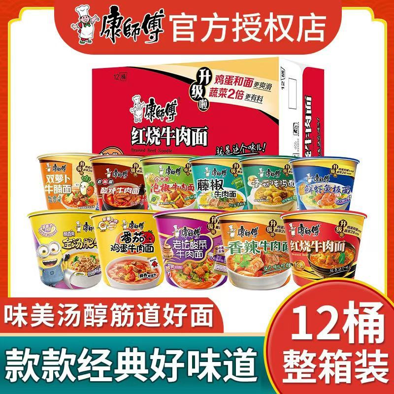 康师傅方便面泡面整箱12桶装泡椒鲜虾藤椒红烧牛肉面夜宵速食批发