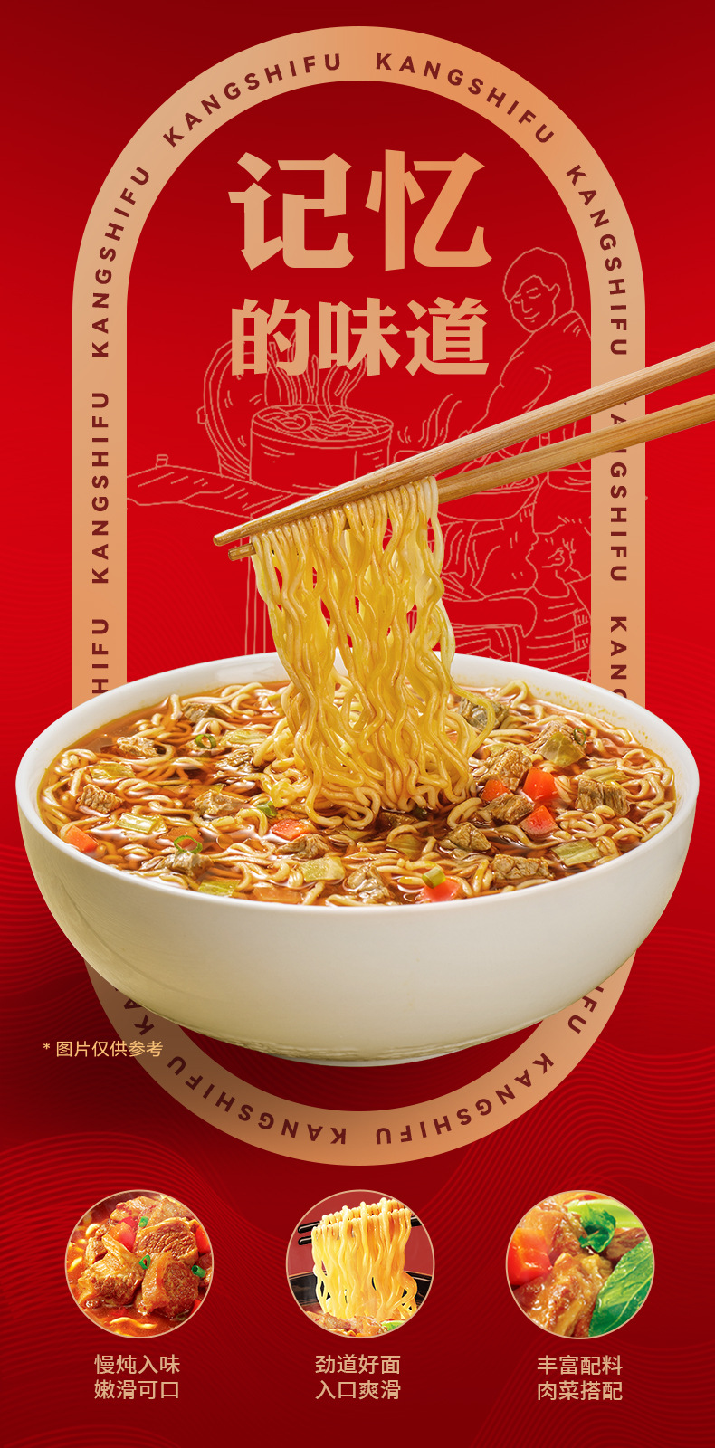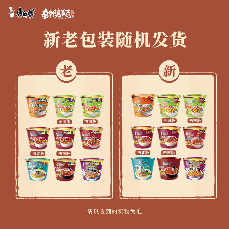 四川重慶風紅油版康師傅インスタントラーメン、泡椒牛肉、牛肉の煮込み味、桶入り、夜食