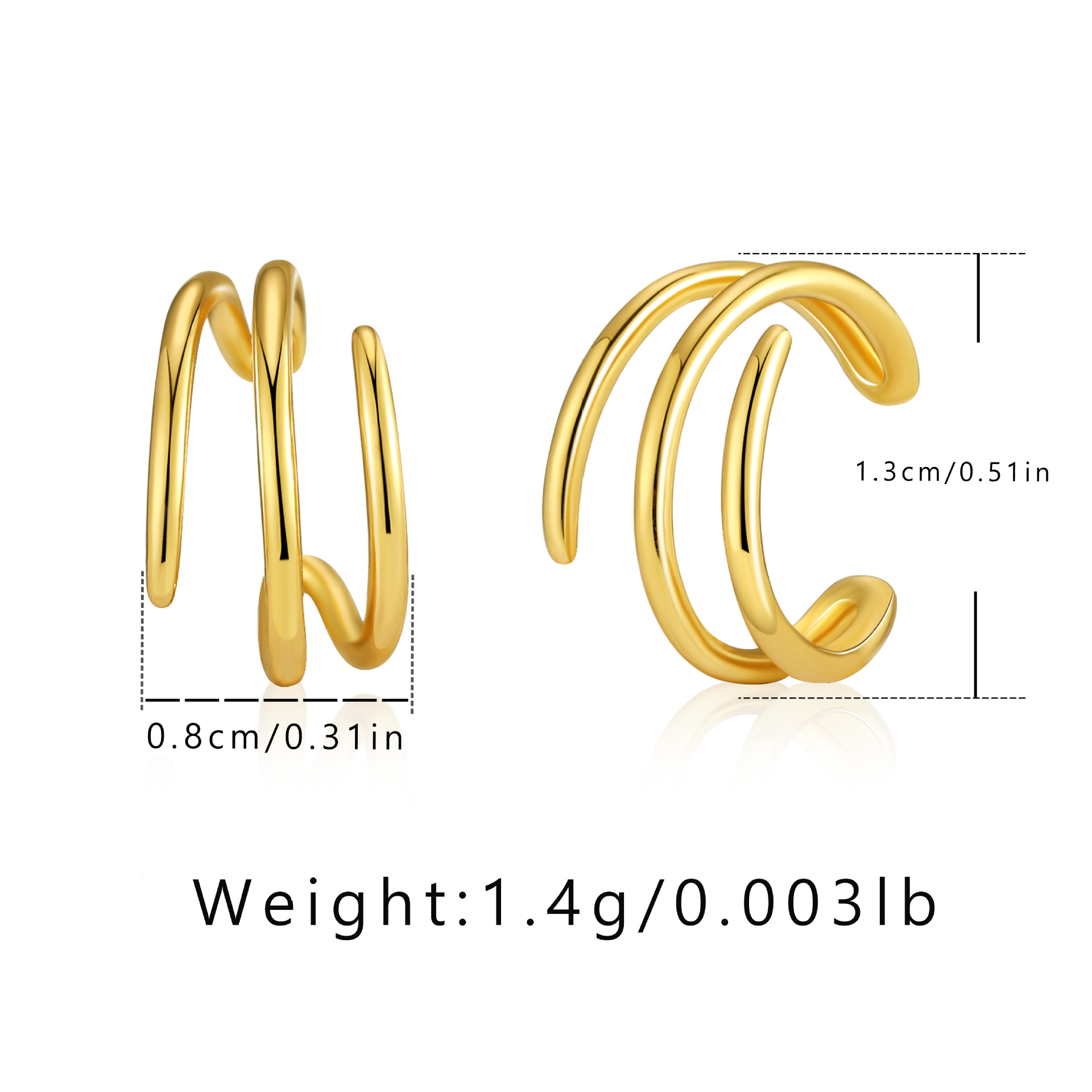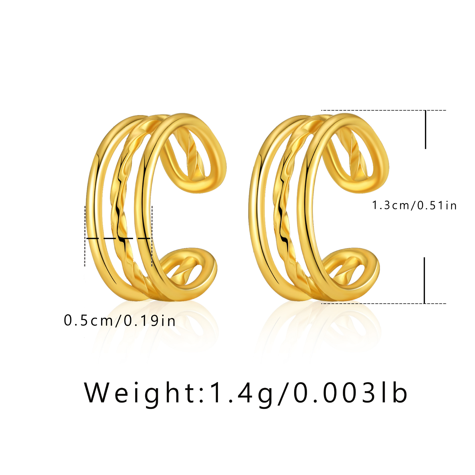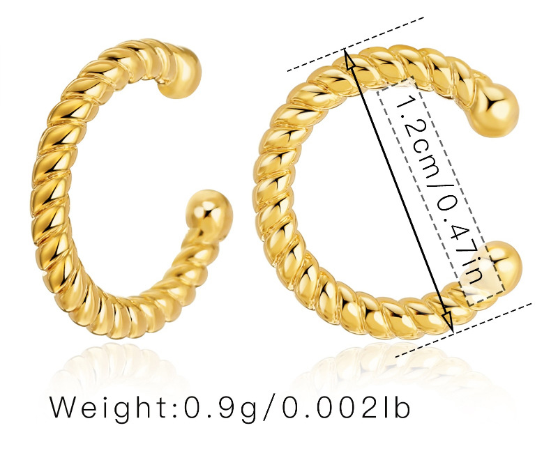 フレンチレトロ金属質感耳穴なし耳骨クリップ銅メッキ18k真金高級感小型シンプルc型耳クリップ