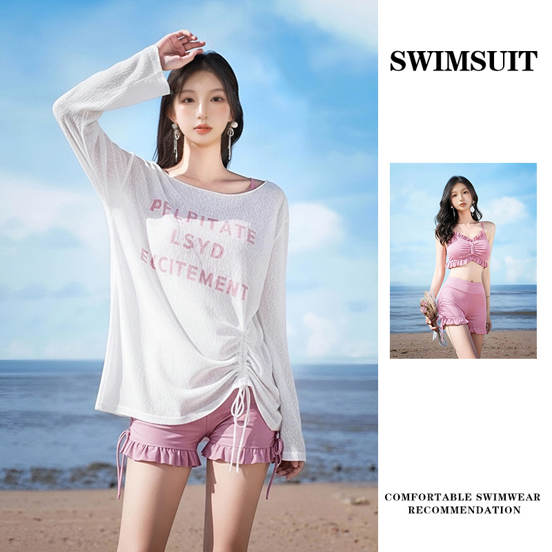 スプリット水着女性 2025 新しいインターネットセレブスタイルコンサバティブスリーピース水着リゾートスタイル長袖カバーアップ水着卸売