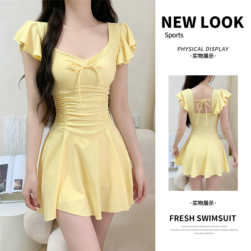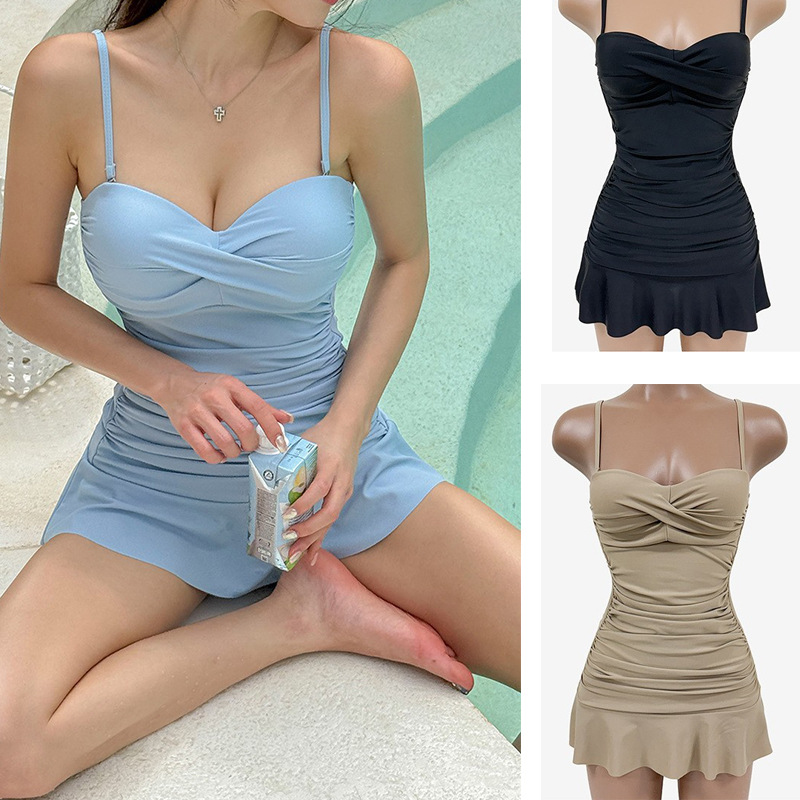 女性用水着 2025 新しいワンピース無地甘い保守的な純粋な欲望スタイルお腹カバー痩身温泉休暇水着