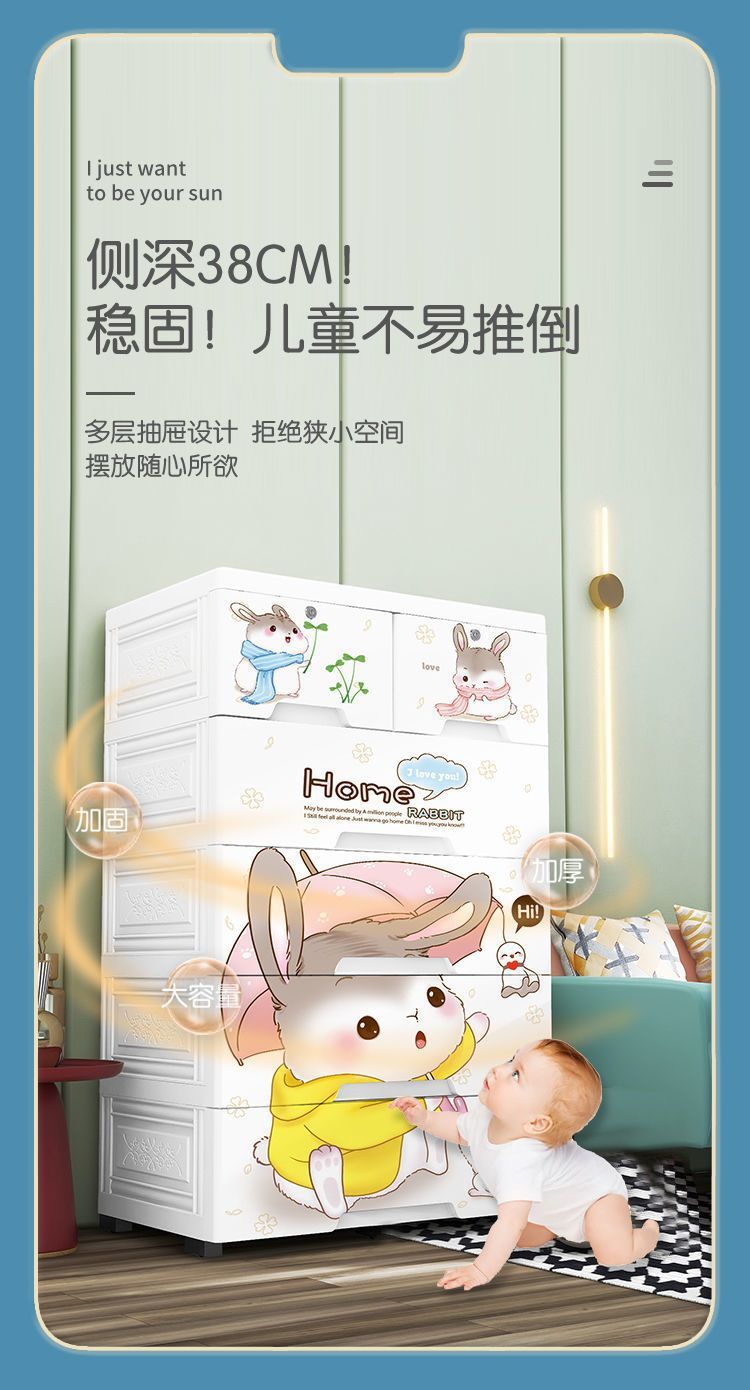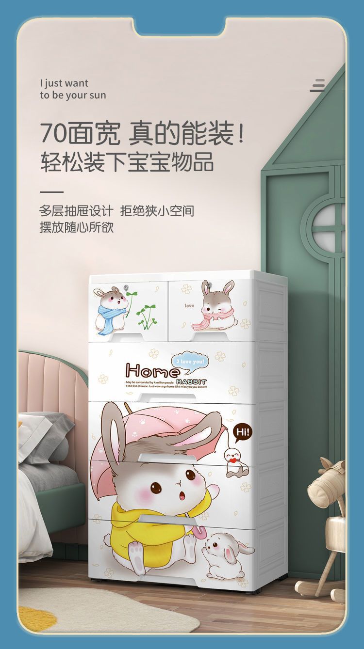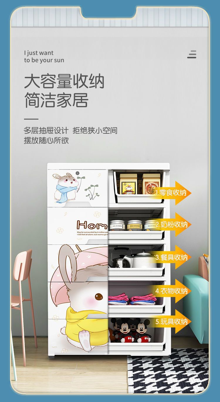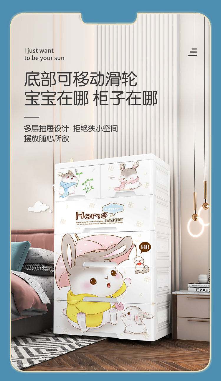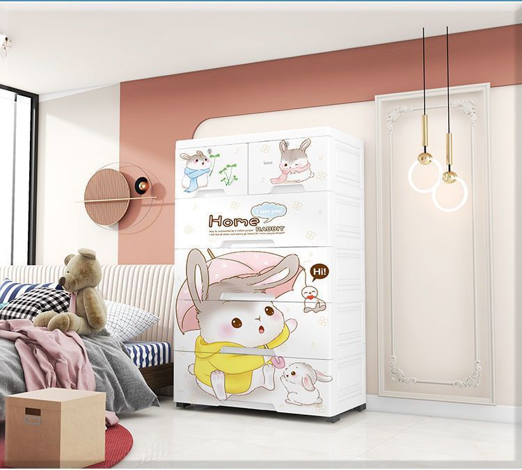 引き出し式多層収納キャビネット大サイズ60cm幅厚手子供ロッカー家庭用プラスチックワードローブ五斗キャビネット