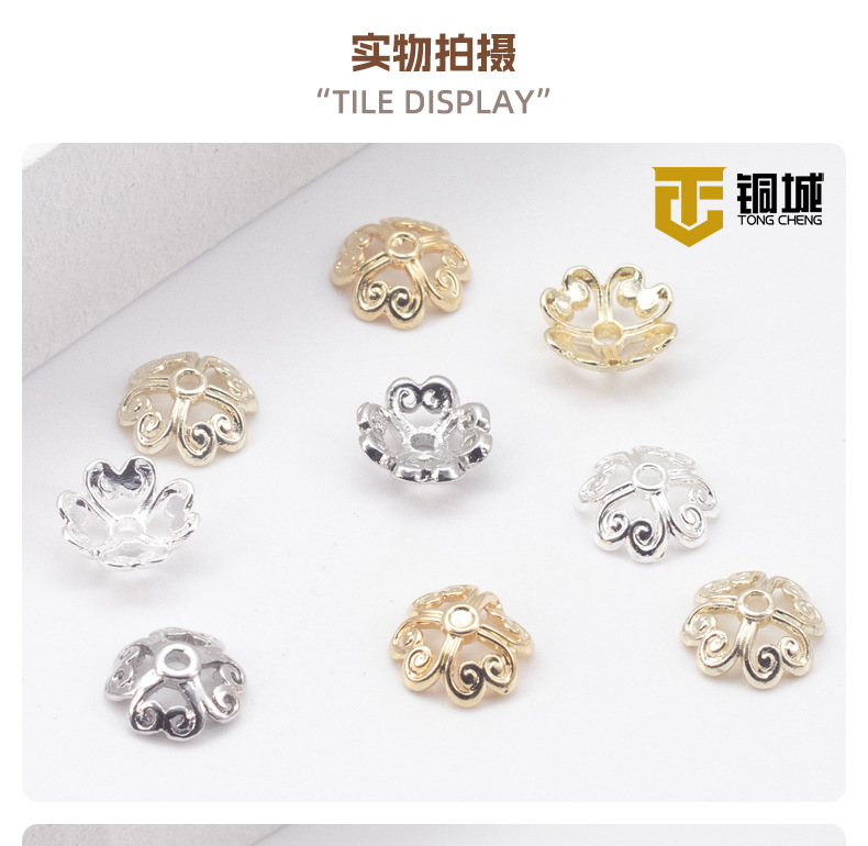 真金メッキ梅の透かし彫り花托18k包金diy手作りアクセサリー仕切り保色ブレスレットビーズ銅花帽子