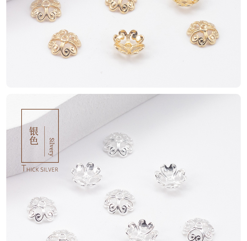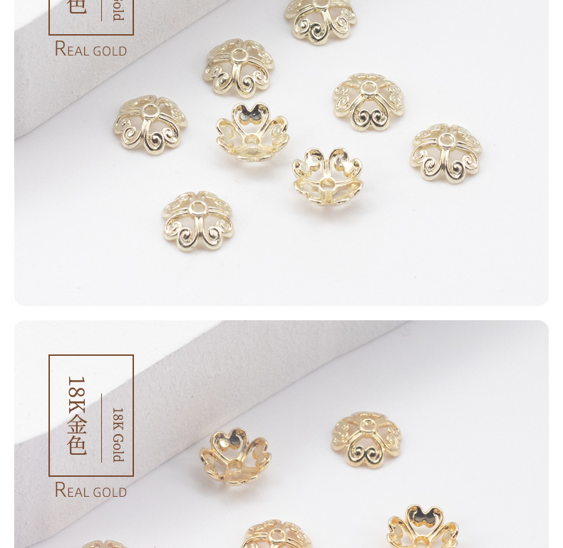18k包金四葉花托高保色メッキ金8.5mm手作りdiyビーズ材料アクセサリー