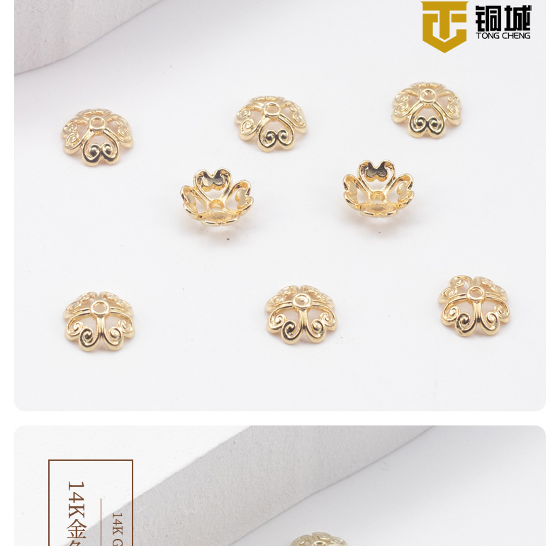 14k包金高保色透かし彫り小蛮腰メッキ真金両面花托手作りdiyブレスレット隔珠ネックレス部品