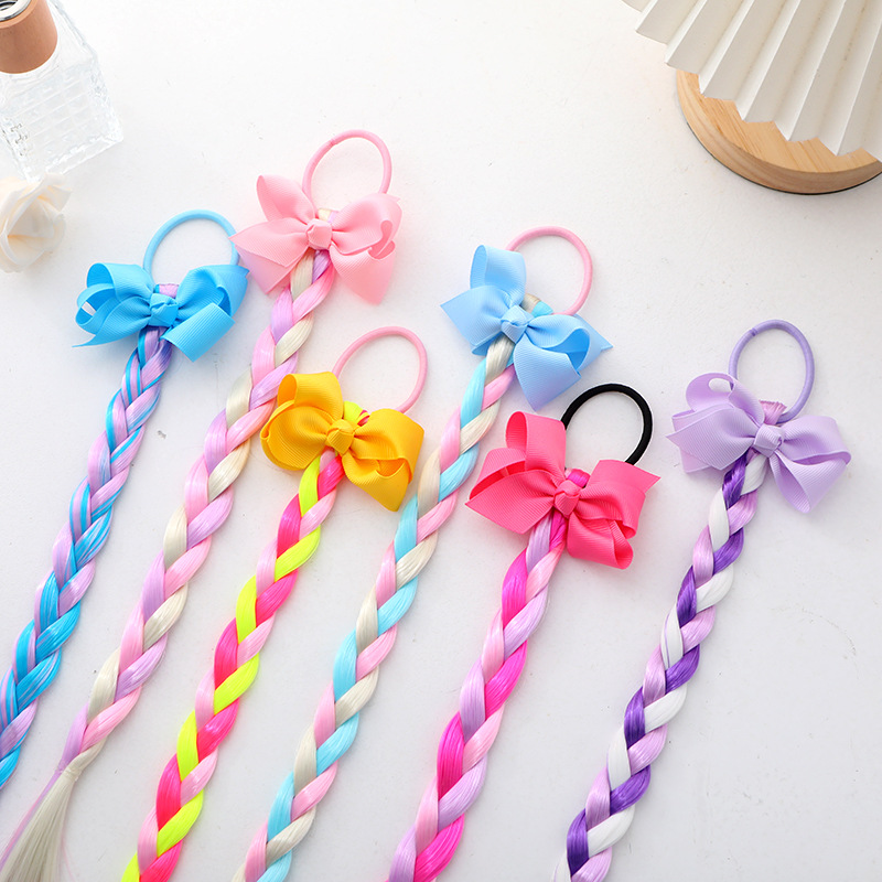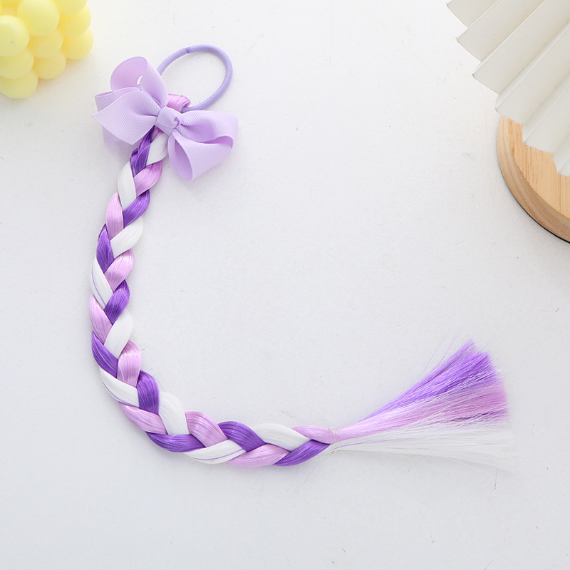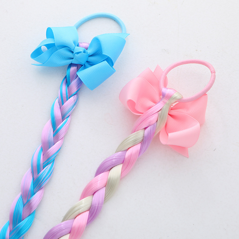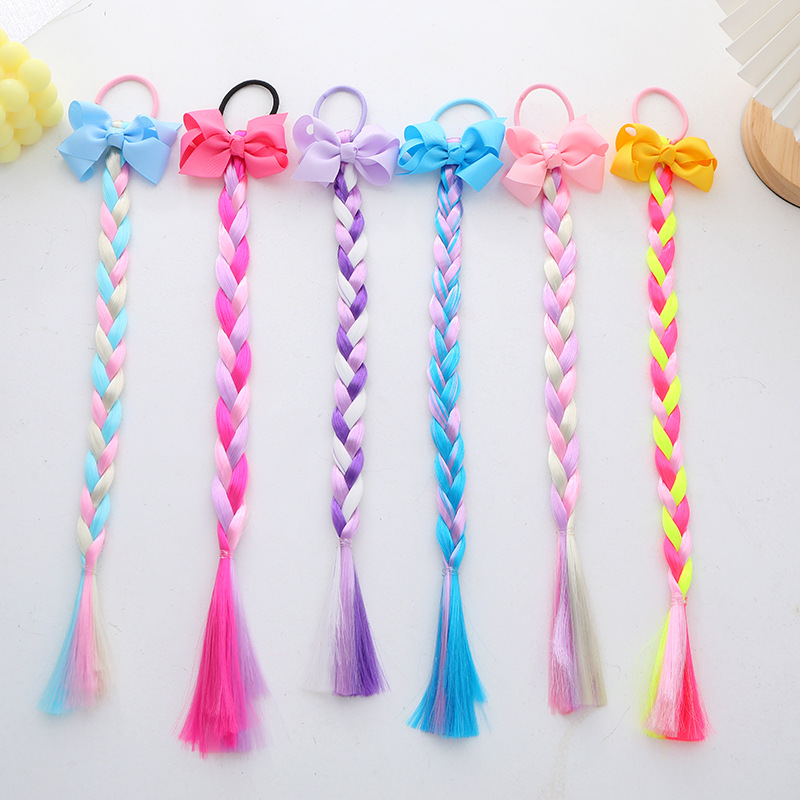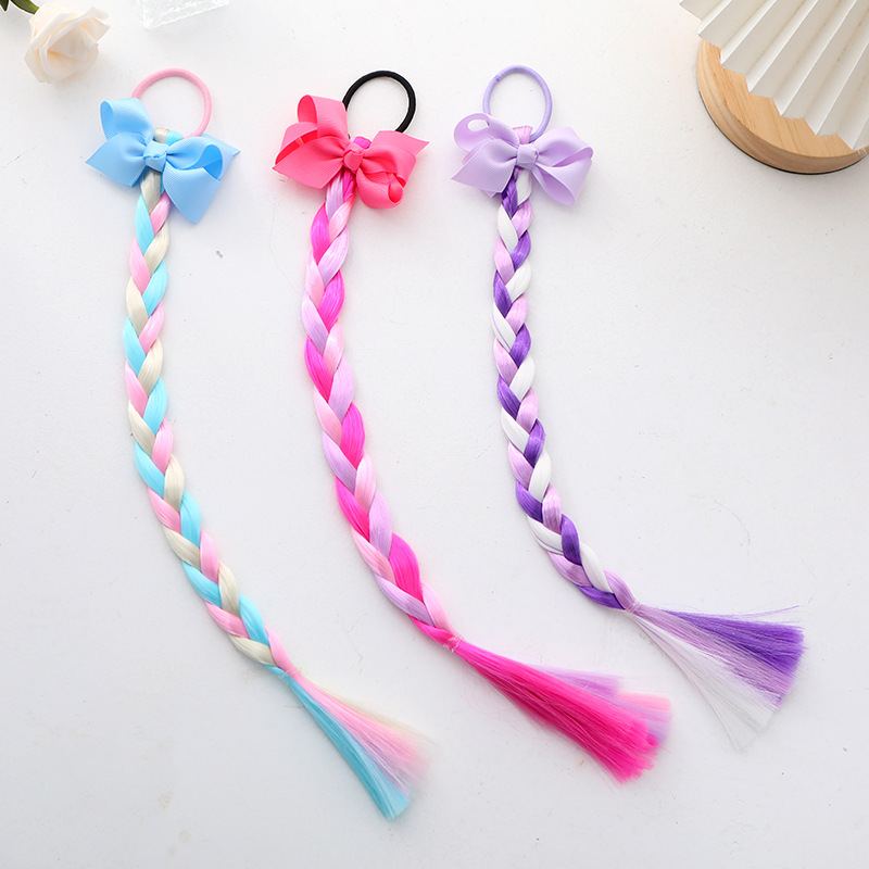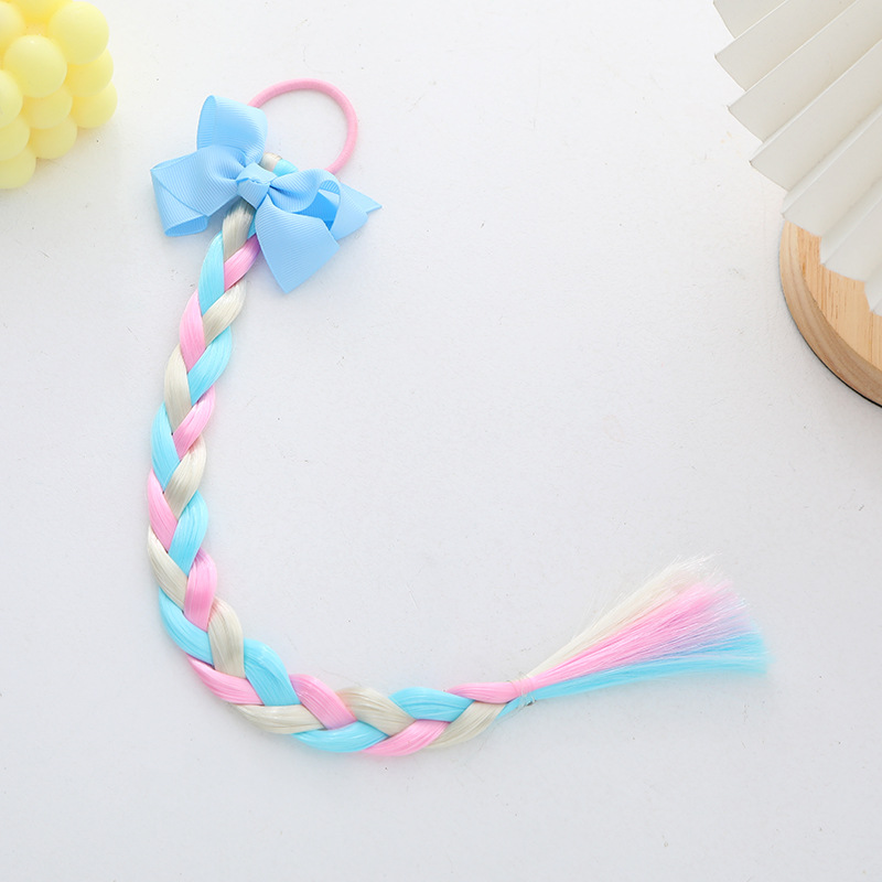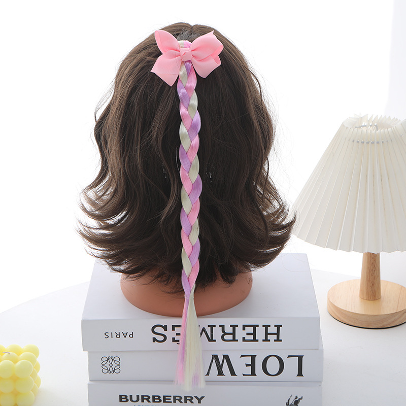 新品子供用カラーかつらポニーテールカラー三つ編みヘアゴム付きカラー編みヘアポニーテール