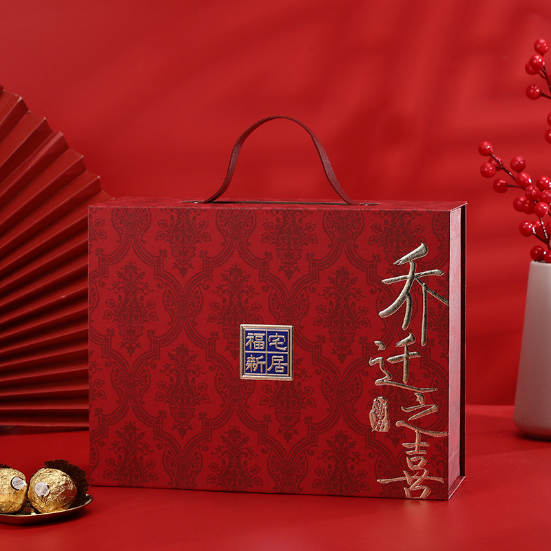 中国式新型ジョー移転ギフトボックス箔押し書体プリントギフトボックス磁気吸引カバー手提げ喜糖箱メーカー卸売り