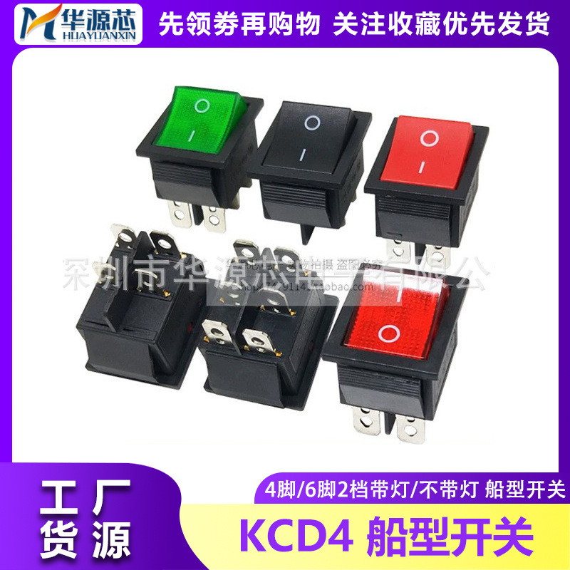 KCD4船型开关船形开关小翘板电源按钮摁钮6脚电子按压式带灯250V