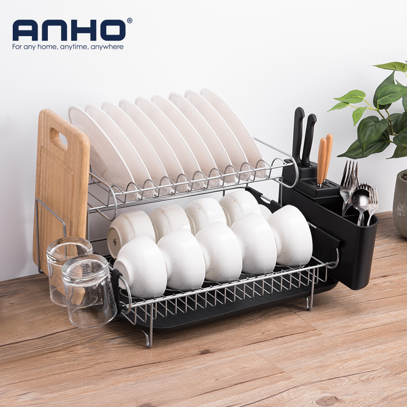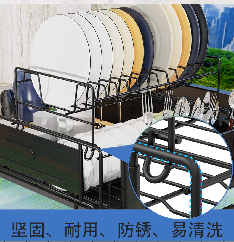 304不锈钢双层可拆卸沥水架刀叉碗碟沥水置物架dish rack持久耐用