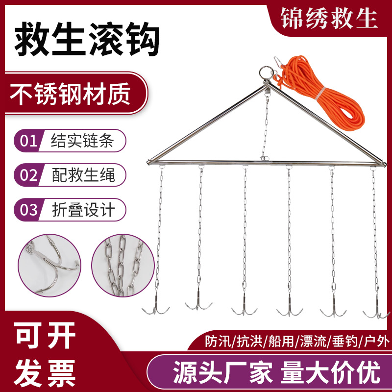 水域救助列式ローラーフック折り畳み式ステンレス水中すくい式ローラーフック溺死救助レスキュー列爪フック