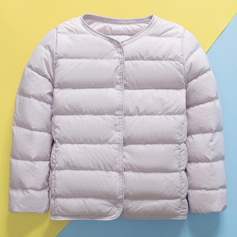 越境商品の新型子供服の薄っぺらなダウンジャケットの長袖制服の中身は襟がない90毛の中の子供服の保温コートです。