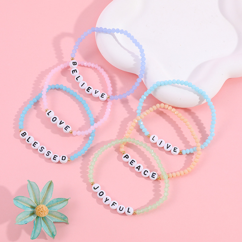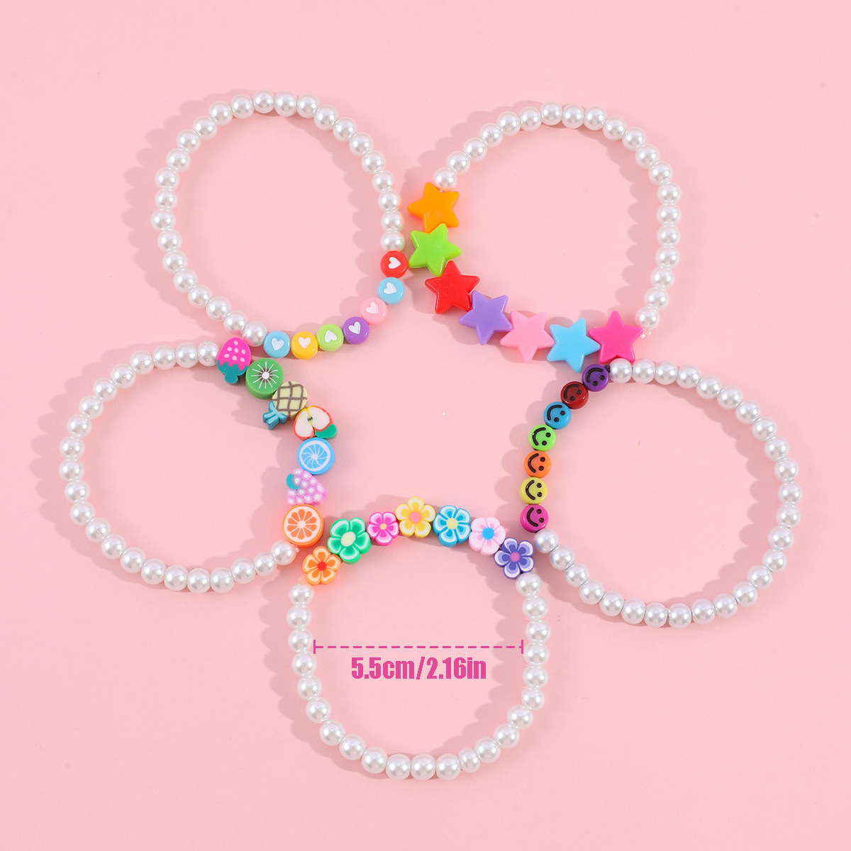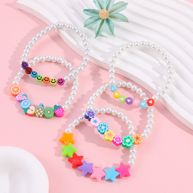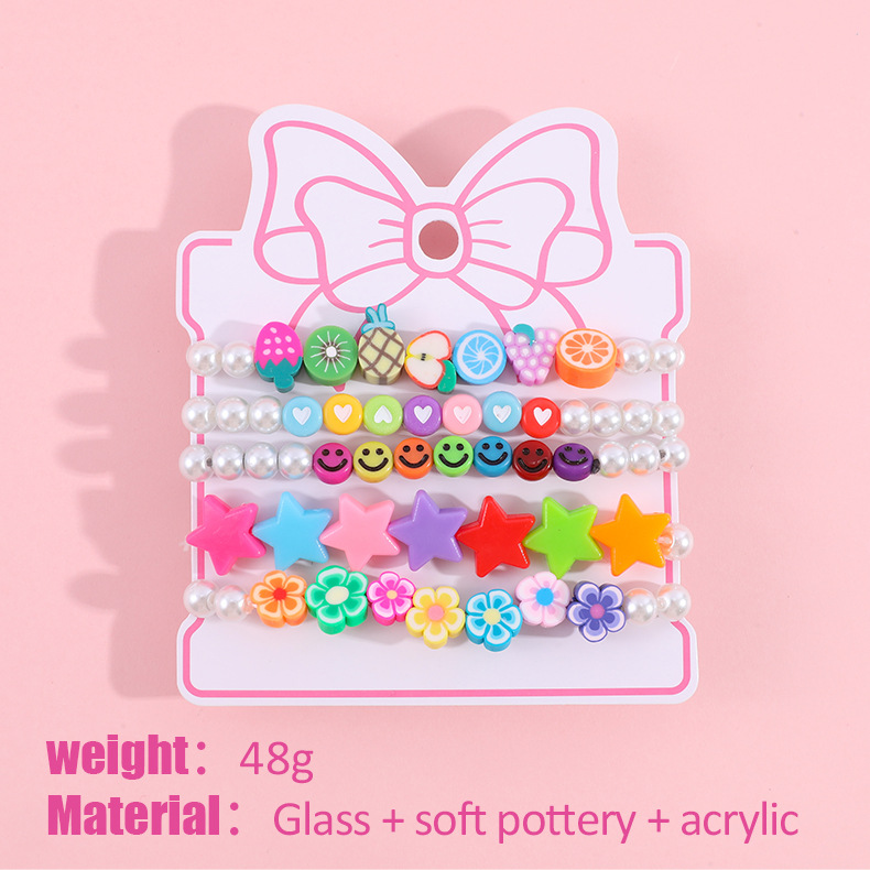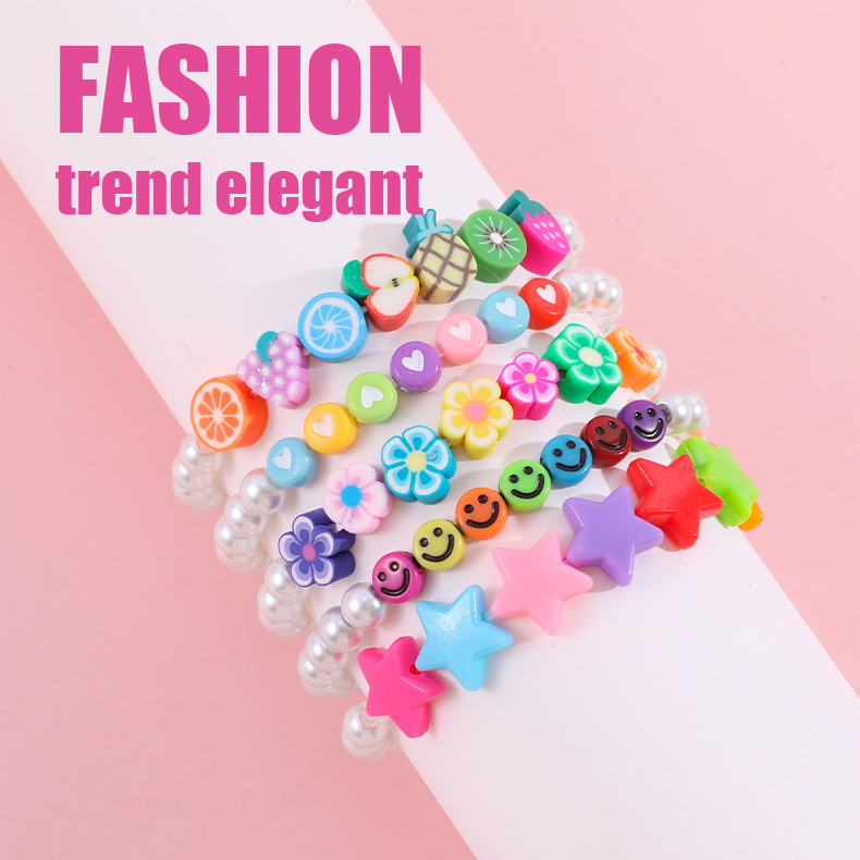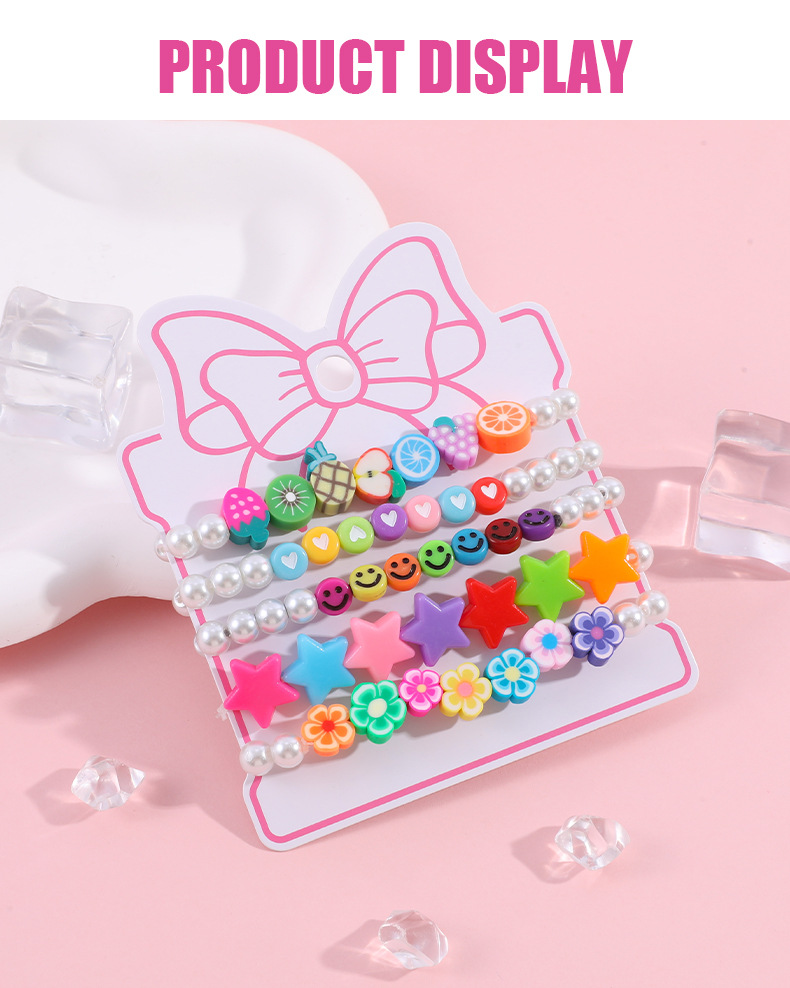 芸芸のアクセサリのメーカーの商品の供給源の子供のカラーのアクリルの字の玉の柔らかい陶器の果物のブレスレットの6セットのプレゼント