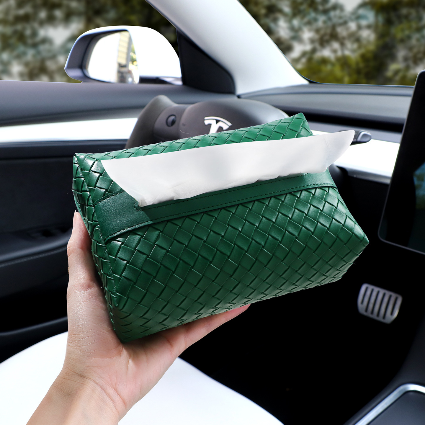 车载纸巾盒轻奢高级感编织纹皮质纸巾盒车规级抽纸盒餐巾纸收纳盒