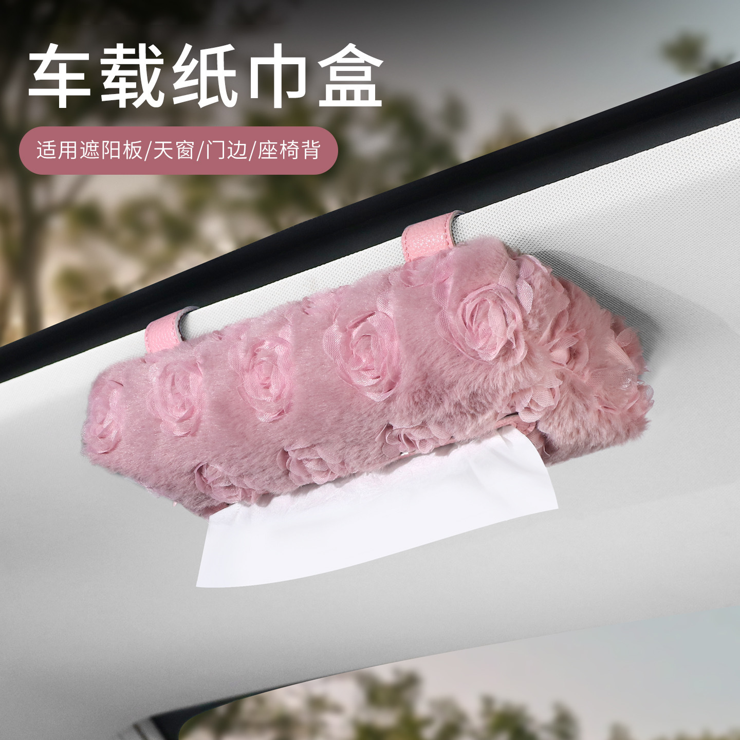 汽车遮阳板纸巾盒车载毛绒玫瑰抽纸盒轻奢高级质感车内收纳纸抽盒