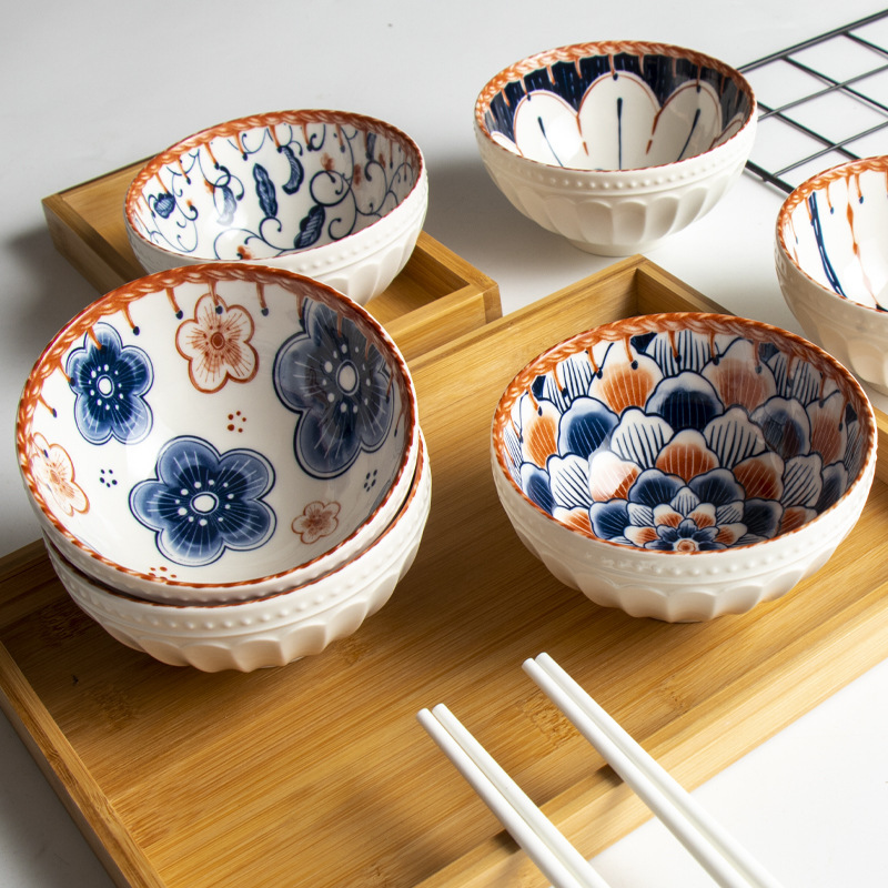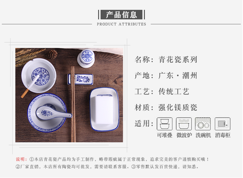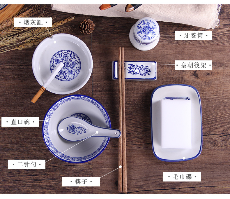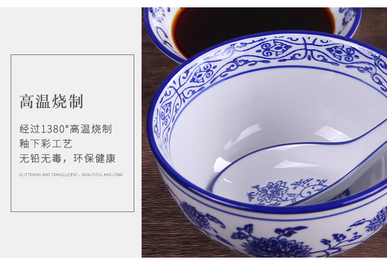 中国式青花磁器茶碗ホテルの特色茶碗家庭用クリエイティブ茶碗のスープ茶碗4インチ4.5インチ5インチホテル用茶碗