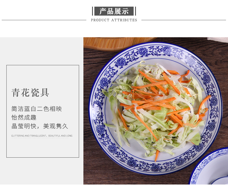 青花磁器のご飯の皿の深皿の家庭用の皿の野菜の皿の唐辛子の魚の頭の皿のホテルの食器のスープの皿の大皿は電子レンジができます。