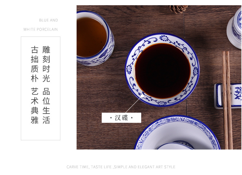 レトロな青と白の磁器ホテルレストランソースプレートセラミックフレーバープレート調味料プレート醤油プレート酢プレート箸ホルダー箸ホルダー箸枕