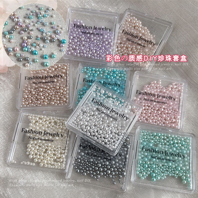 ネイルアートアクセサリーカラフルな高光沢ラウンドパール大小立体ネイル純白ピンクブルーパープルネイルダイヤモンドアクセサリー