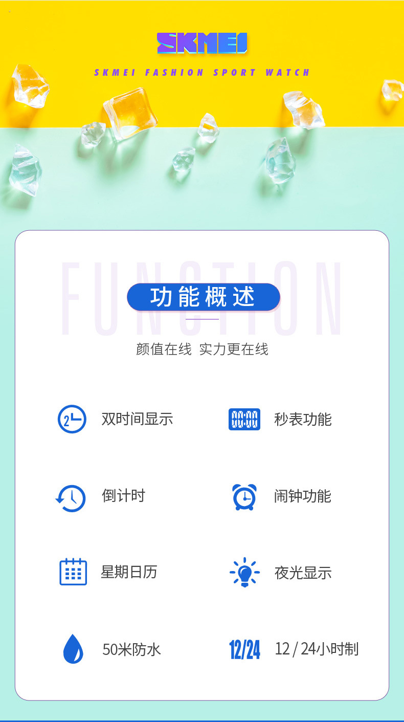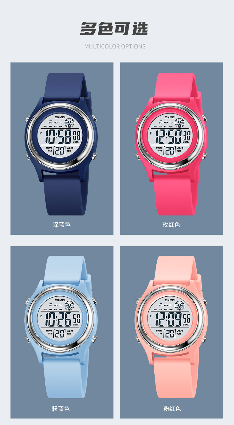 SKMEI 多機能防水スポーツ電子腕時計 男女兼用 シンプルで多用途なカラフルシリコンバンド腕時計 卸売