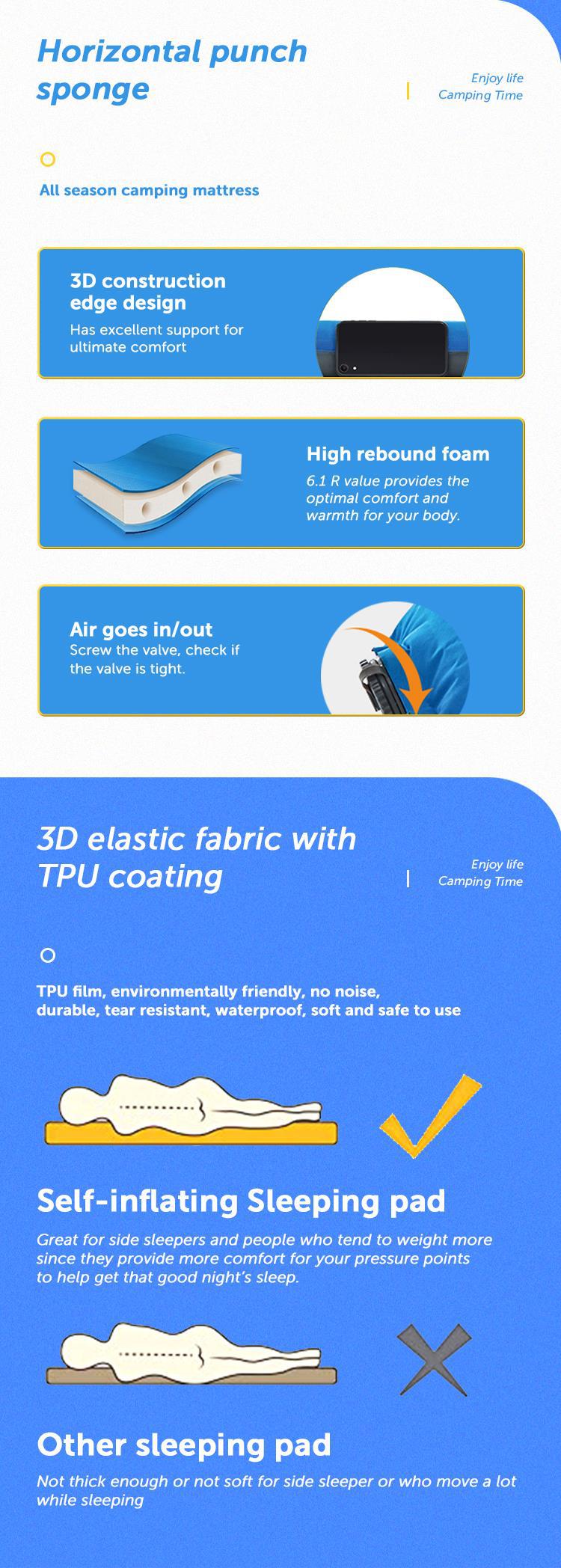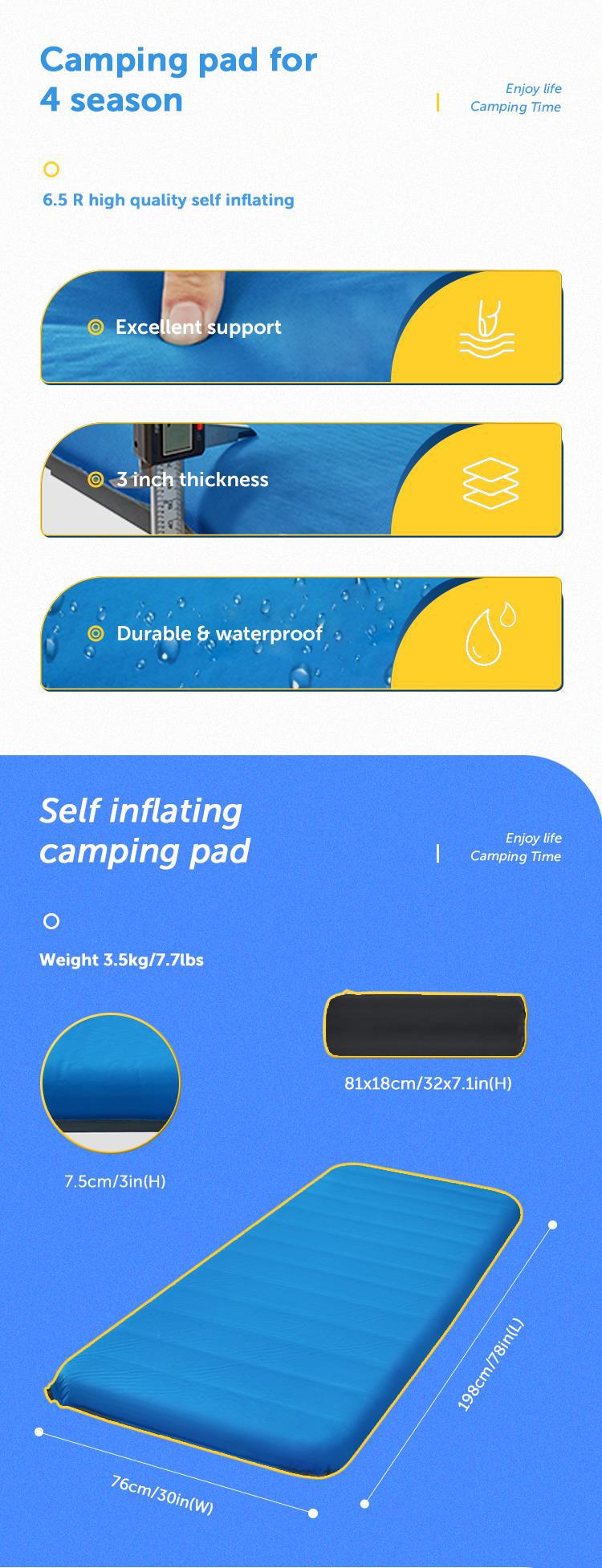 高品质野营垫3英寸厚泡沫睡眠床垫超值柔软保暖便携式旅行自充气垫